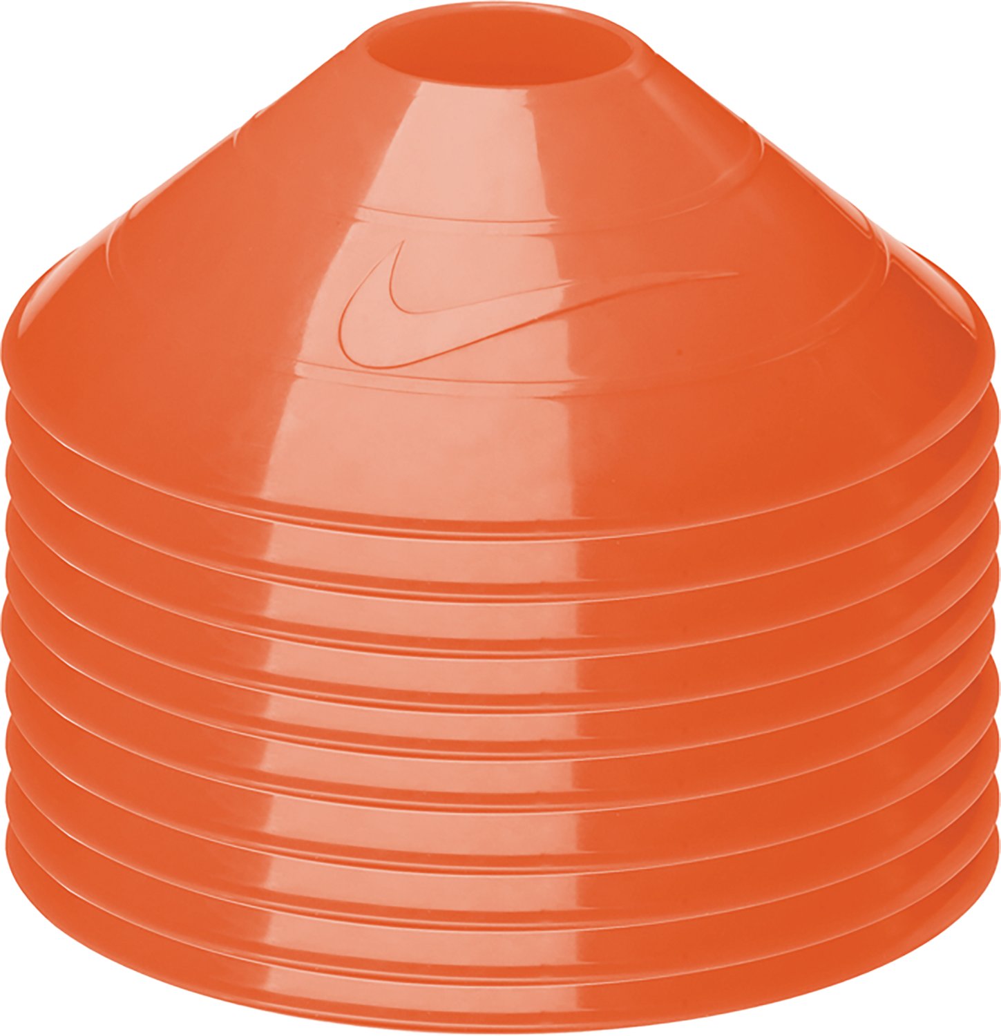 Improve your athletic performance with the help of the Nike Training Cones 10-Pack. They are made of 100% polyethylene to allow flexibility. The bright color offers increased visibility, and they are ideal for sports and agility training.