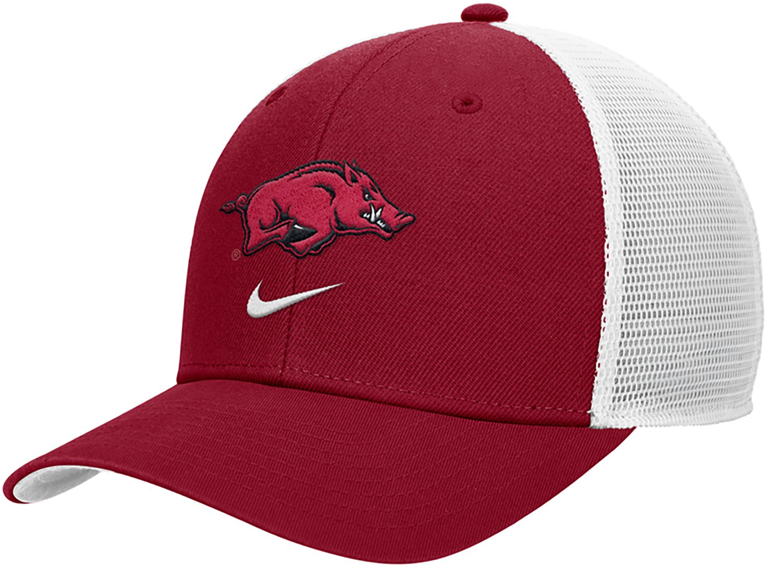 Get ready for game day with the Nike University of Arkansas Mascot Rise Cap. The cotton and polyester material provides a comfortable feel, while the adjustable plastic closure offers a custom fit. The team logo shows off your Razorbacks pride.