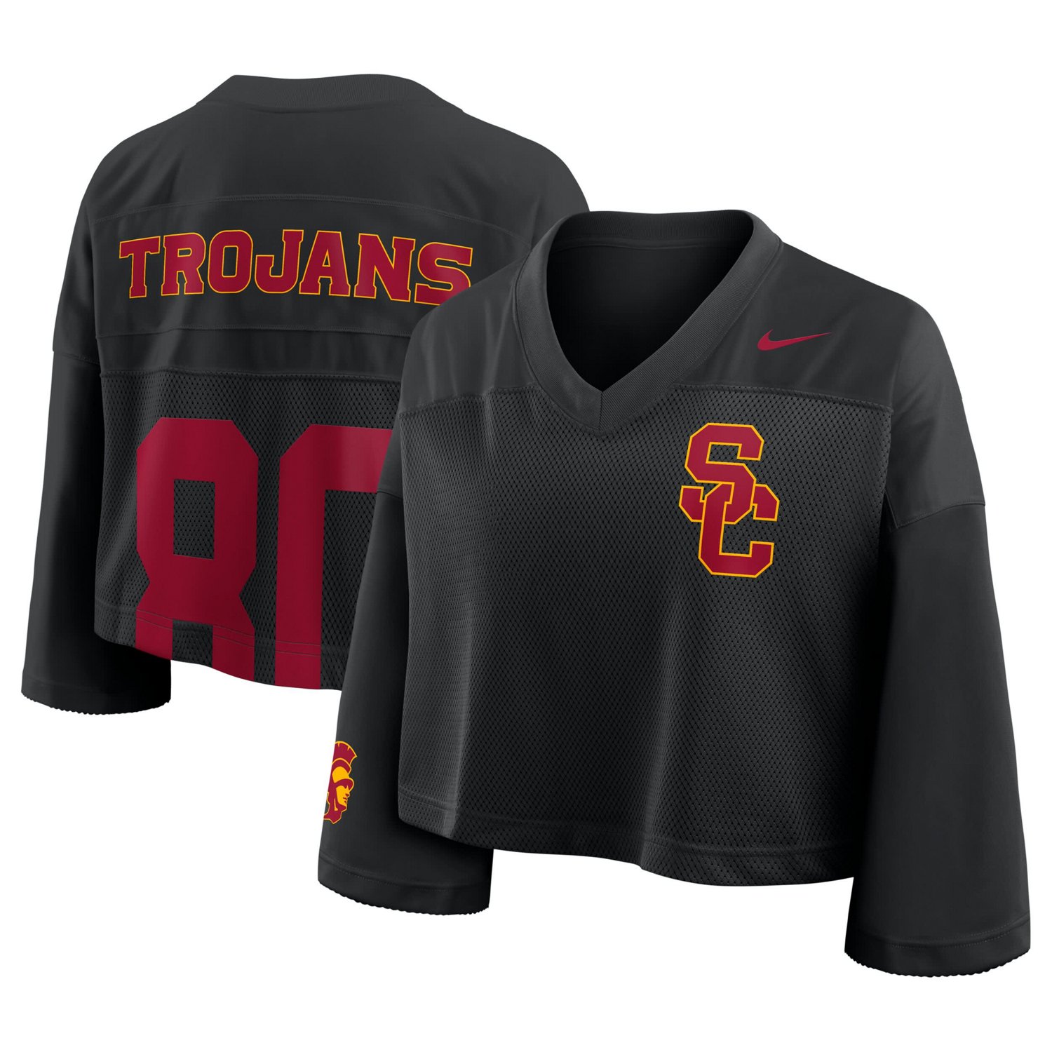 Nike merges fashion fandom and comfort with this USC Trojans Cropped Mesh Jersey Its trendy design features dropped shoulders for ease of movement a roomy fit and breathable mesh fabric Sweat-wicking Dri-FIT technology keeps you dry and cool all day in this stylish USC Trojans jersey