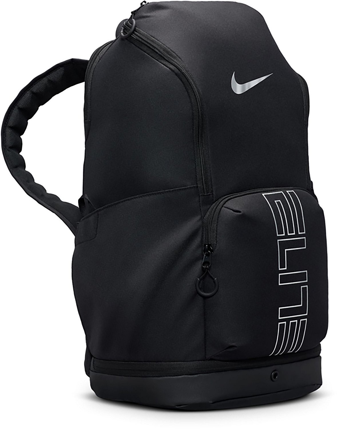 Haul your gear in the Nike Varsity Elite Backpack. The polyester fabric affords durability, while the main compartment offers plenty of storage space. The bottom zippered pocket is ventilated, making it ideal for storing dirty items, and the Air Max shoulder straps allow for comfortable carrying.