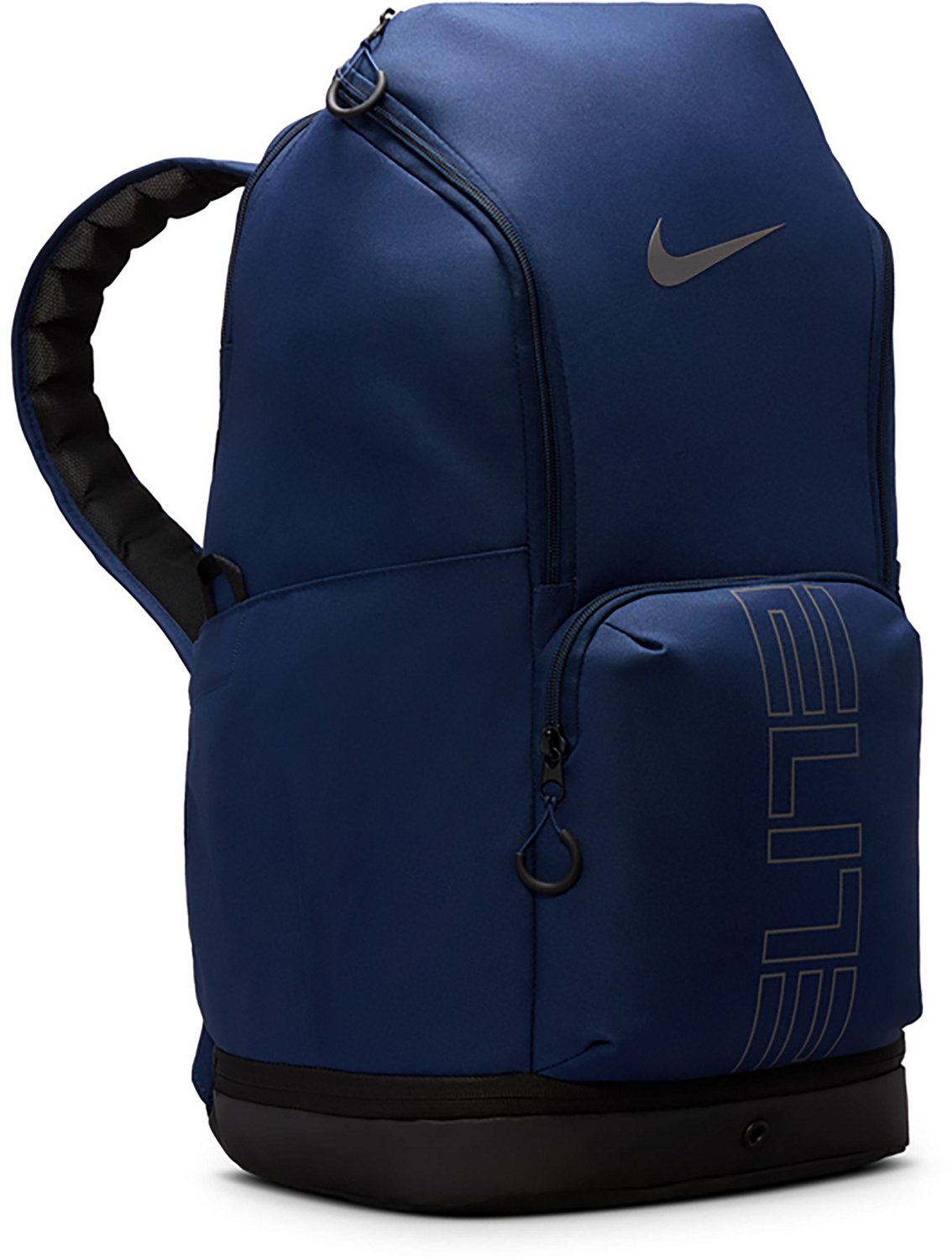 Haul your gear in the Nike Varsity Elite Backpack. The polyester fabric affords durability, while the main compartment offers plenty of storage space. The bottom zippered pocket is ventilated, making it ideal for storing dirty items, and the Air Max shoulder straps allow for comfortable carrying.