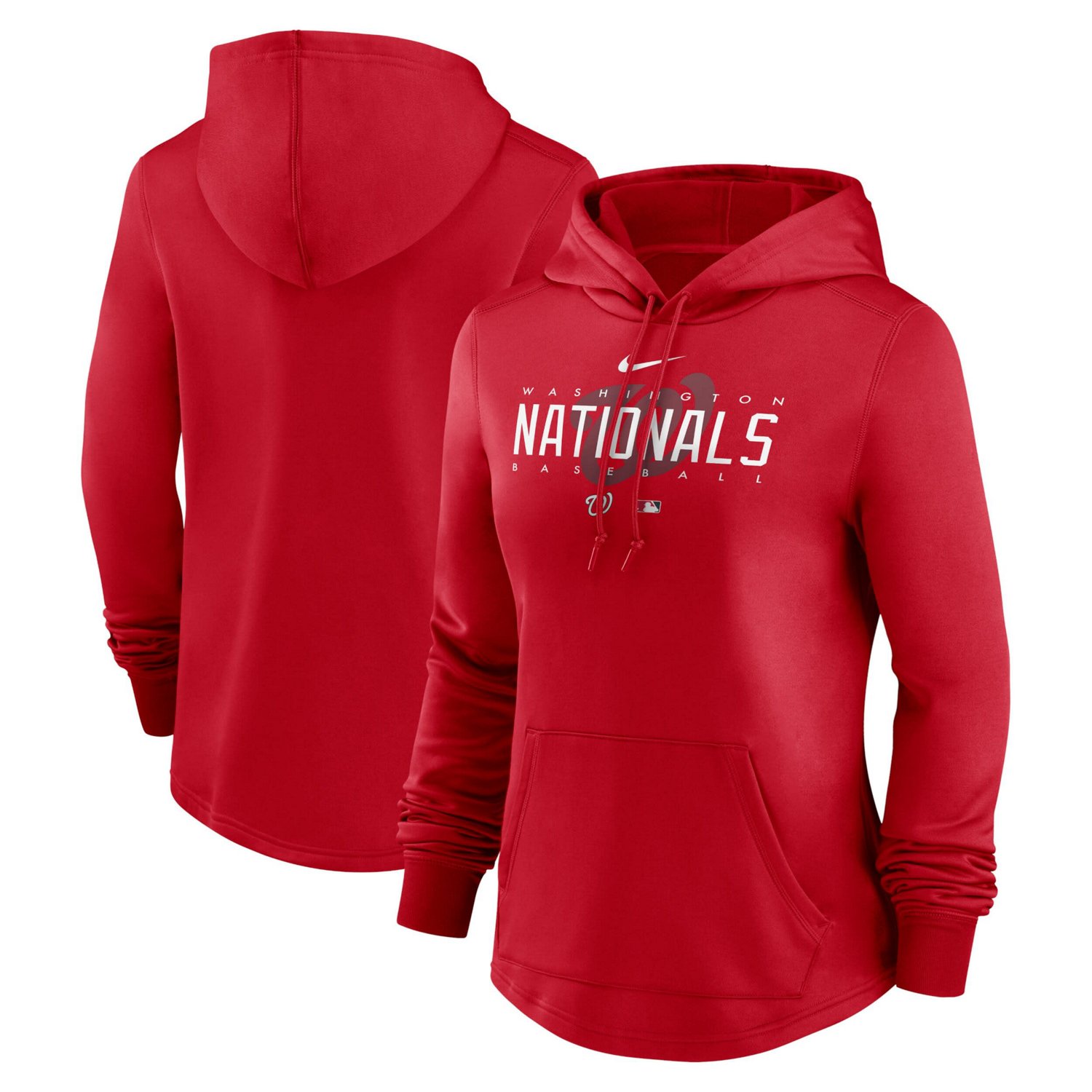 The Nike Red Washington Nationals Authentic Collection Pregame Performance Pullover Hoodie is the perfect way to show your support for the Washington Nationals Made with Nike Therma fabric this hoodie will keep you warm and comfortable even on the coldest game days The fleece lining and flatlock stitching provide added comfort while the front pouch pocket is perfect for storing your essentials The screen-print graphics and scuba hood with drawstring complete the look making this hoodie a must-have for any Washington Nationals fan