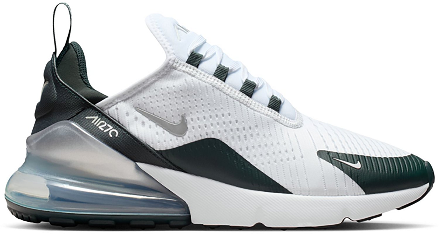 Conquer your day in comfort and style with the Nike Air Max 270! These lifestyle sneakers are essential to your footwear collection, seamlessly blending bold style with premium, lasting comfort. Experience the legendary Max Air unit visible in the heel. This innovative technology efficiently absorbs impact, delivering a soft, responsive feel with every step and instantly transforming your walk into a smooth ride. The plush foam midsole adds a crucial layer of comfort, supporting your feet throughout the day. Your feet remain cool and dry because the upper, crafted from a sleek blend of synthetic and textile materials, promotes breathability for everyday wear. A stretchy inner sleeve replaces traditional laces, conforming precisely to your foot's shape to deliver a personalized fit that feels secure and supportive. Maintain confidence across varied surfaces; the durable rubber outsole is engineered to provide good traction wherever your day takes you. Select these essential athletic shoes to instantly elevate your casual style and comfort.