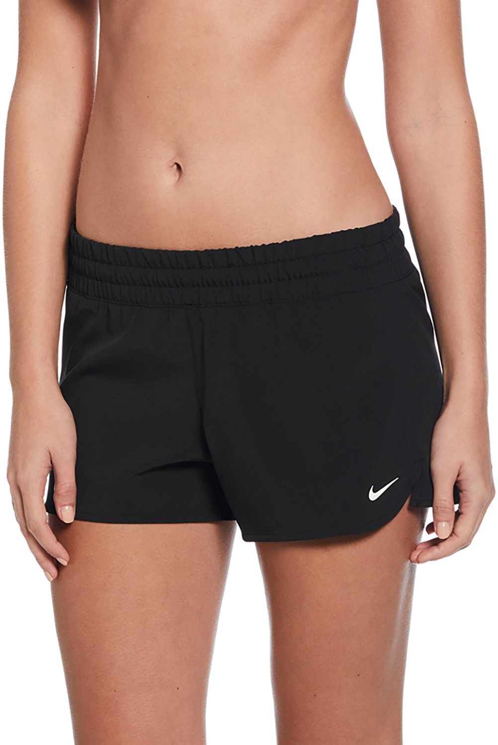 Stay cozy and stylish after getting out of the water in these Nike Women's Breaker Solid Essential Volley Cover Up Shorts 3 in. They are made of 90% polyester and 10% spandex for durability and flexibility, and they are designed with a mid-rise waist for a snug fit and a stylish look.