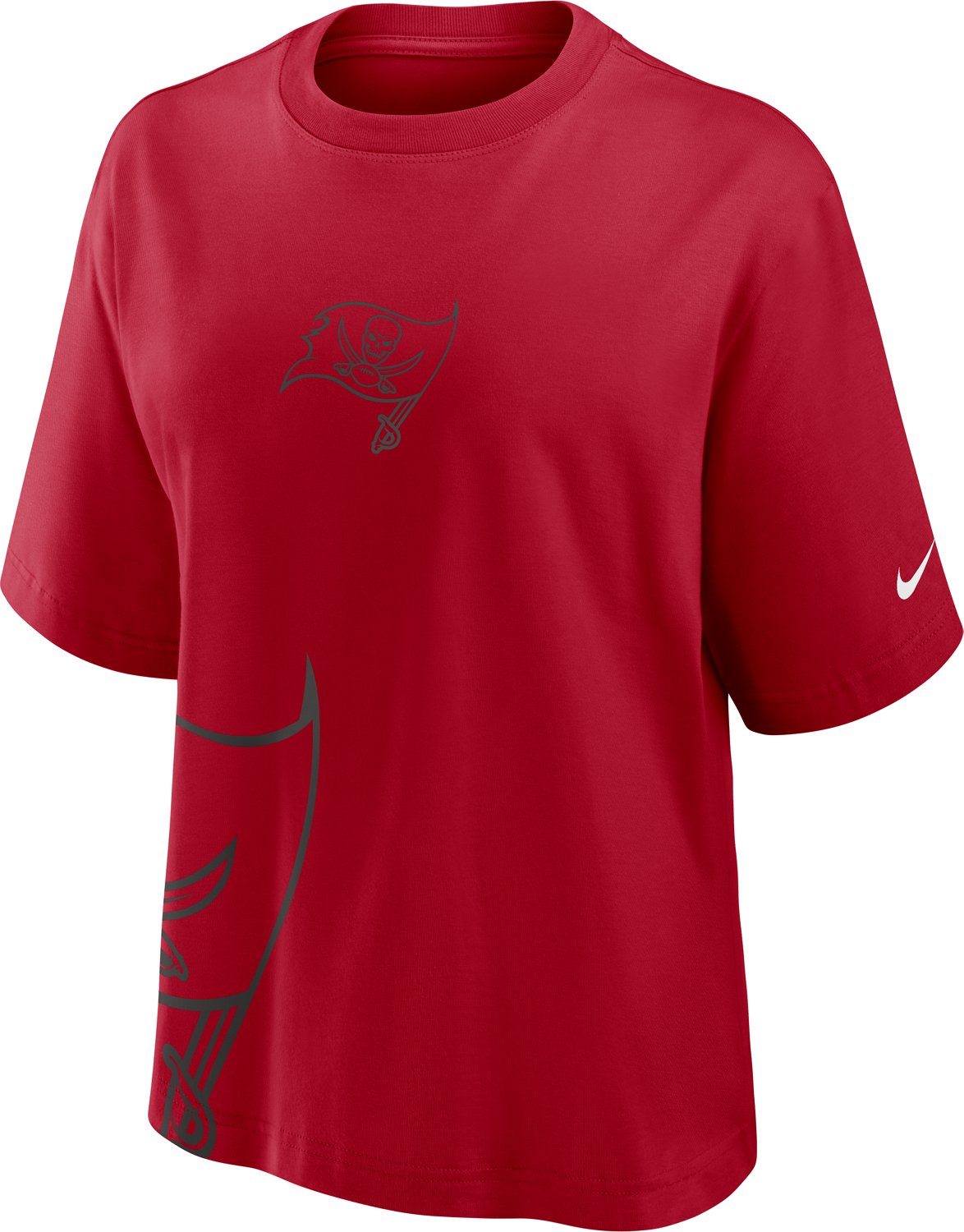 Root for your favorite team while wearing the Nike Women's Buccaneers Essential Boxy T-shirt. This shirt is crafted with cotton fabric to help keep you comfortable on game day, while the team graphic makes it clear you're a dedicated fan.