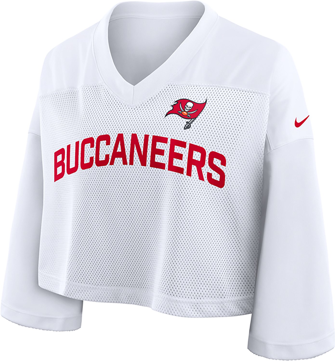Make it easy to see how much you support your team by wearing the Nike Women's Buccaneers Jersey Fashion Top. The top is designed with team details to help highlight your loyalty, and its short sleeves provide casual comfort.