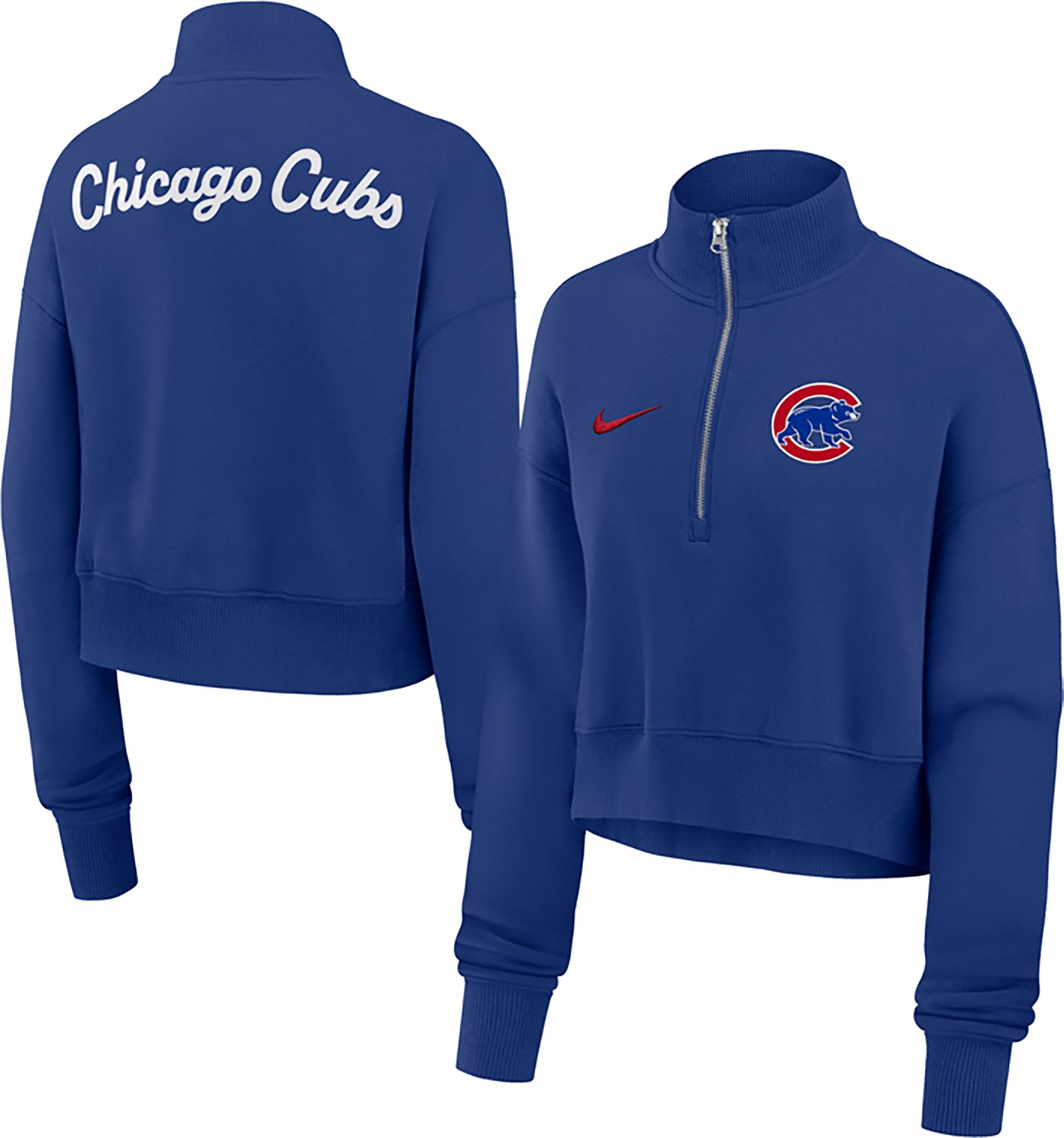 Nike Women's Chicago Cubs Phoenix 1/2-Zip Cropped Long Sleeve Fleece Pullover
