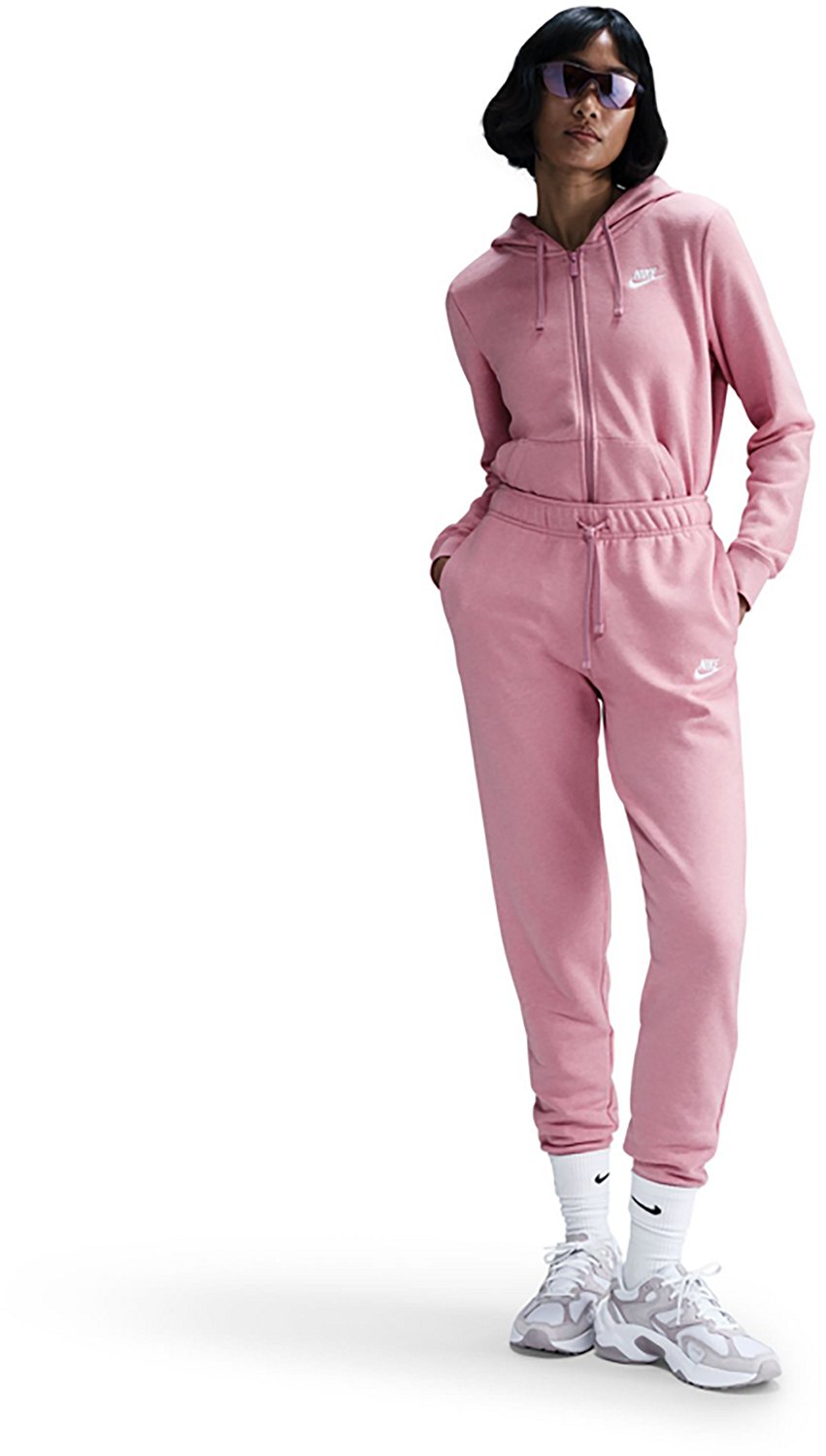 Stay cozy in the Nike Women's Club Fleece Full-Zip Hoodie. This hoodie is made of cotton and polyester fleece fabric for comfort and softness. The jersey-lined 3 panel hood provides added warmth.