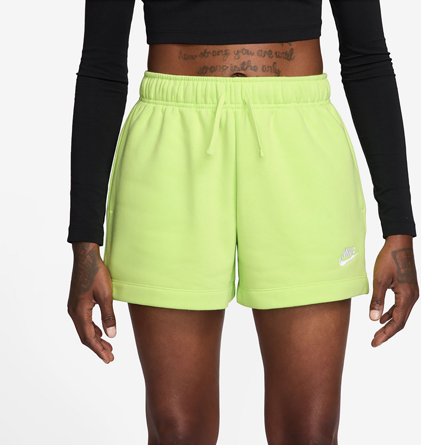 Get out there with the Nike Women's Club Fleece Shorts. The cotton and polyester material provides a comfortable feel, while the elastic waist and flat drawstring combo offers a custom fit. The embroidered logo delivers a stylish look.