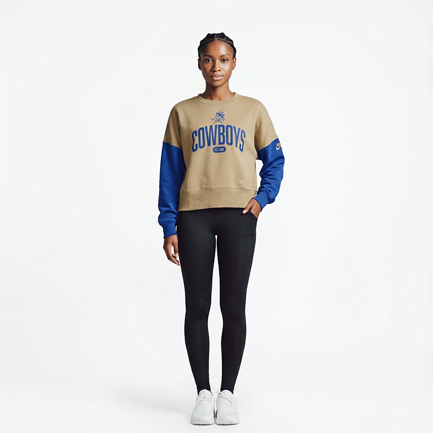 Show your support with the Nike Women's Dallas Cowboys Rewind Oversized Long Sleeve Crewneck Pullover. The cotton-polyester material is soft and breathable, and the Dallas Cowboys graphic print shows your fandom with pride.