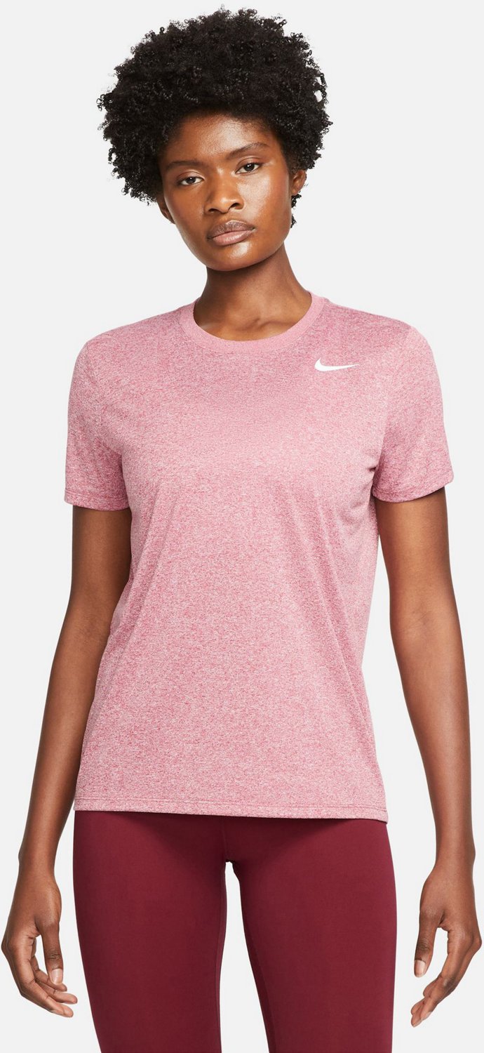 Turn up the heat without worry in the Nike Women's Dri-FIT Legend T-shirt. The Dri-FIT technology wicks away moisture to keep you dry and the polyester fabric offers smooth comfort.