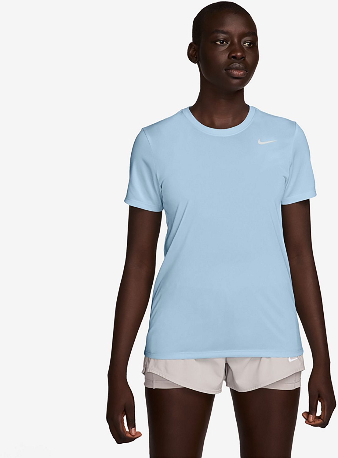 Turn up the heat without worry in the Nike Women's Dri-FIT Legend T-shirt. The Dri-FIT technology wicks away moisture to keep you dry and the polyester fabric offers smooth comfort.