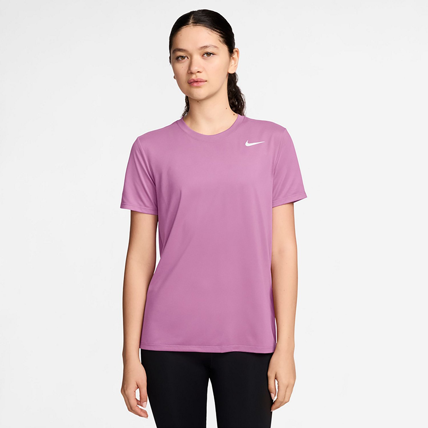 Turn up the heat without worry in the Nike Women's Dri-FIT Legend T-shirt. The Dri-FIT technology wicks away moisture to keep you dry and the polyester fabric offers smooth comfort.