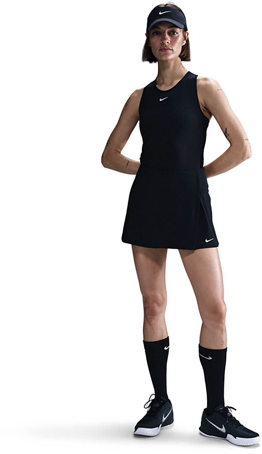 Take on the court in the Nike Women's Dri-FIT Victory Straight Tennis Skort. The body is made of 79% polyester and 21% spandex and the tight is made of 82% polyester and 18% spandex. Its Dri-FIT technology moves sweat away from your skin for quicker evaporation, and the drop-in pockets on both legs of inner shorts fit most phones. Its wrap-style has an overlap vent.