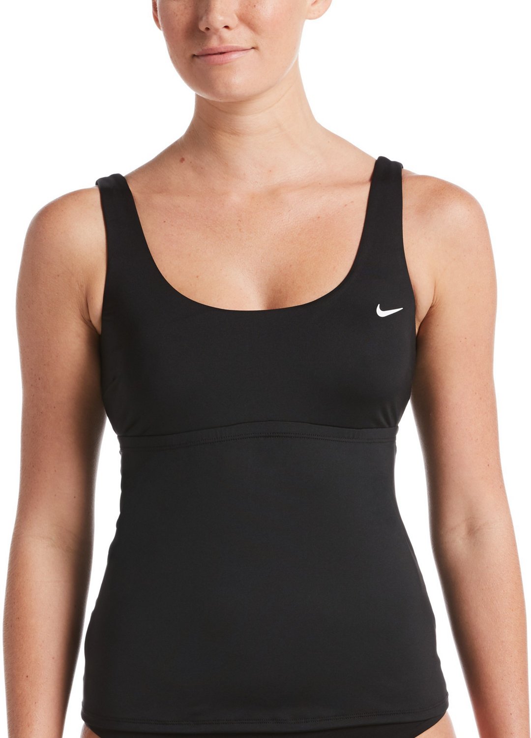 Dive into the water in style while wearing the Nike Women's Essential Scoop Neck Tankini. The polyester and spandex fabric offers stretchy, comfortable wear, and the full liner provides a snug fit. The adjustable straps are designed for a wide variety of water activities, and the removable cups with cup stabilizer pockets allow you to adjust the fit.