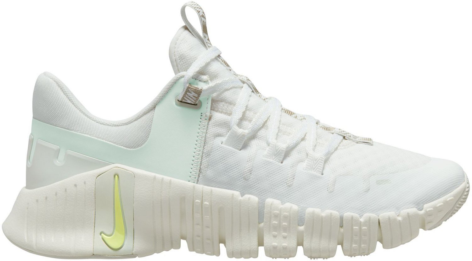 Balancing forefoot flexibility and heel stability, the Nike Women's Free Metcon 5 Training Shoes are designed for versatile workout sessions. Wide internal webbing distributes pressure around the midfoot areas during sudden stops and quick cuts. Lightweight, breathable uppers offer a sock-like feel and easy entry. Rubber tread in high-wear areas provides durable traction.