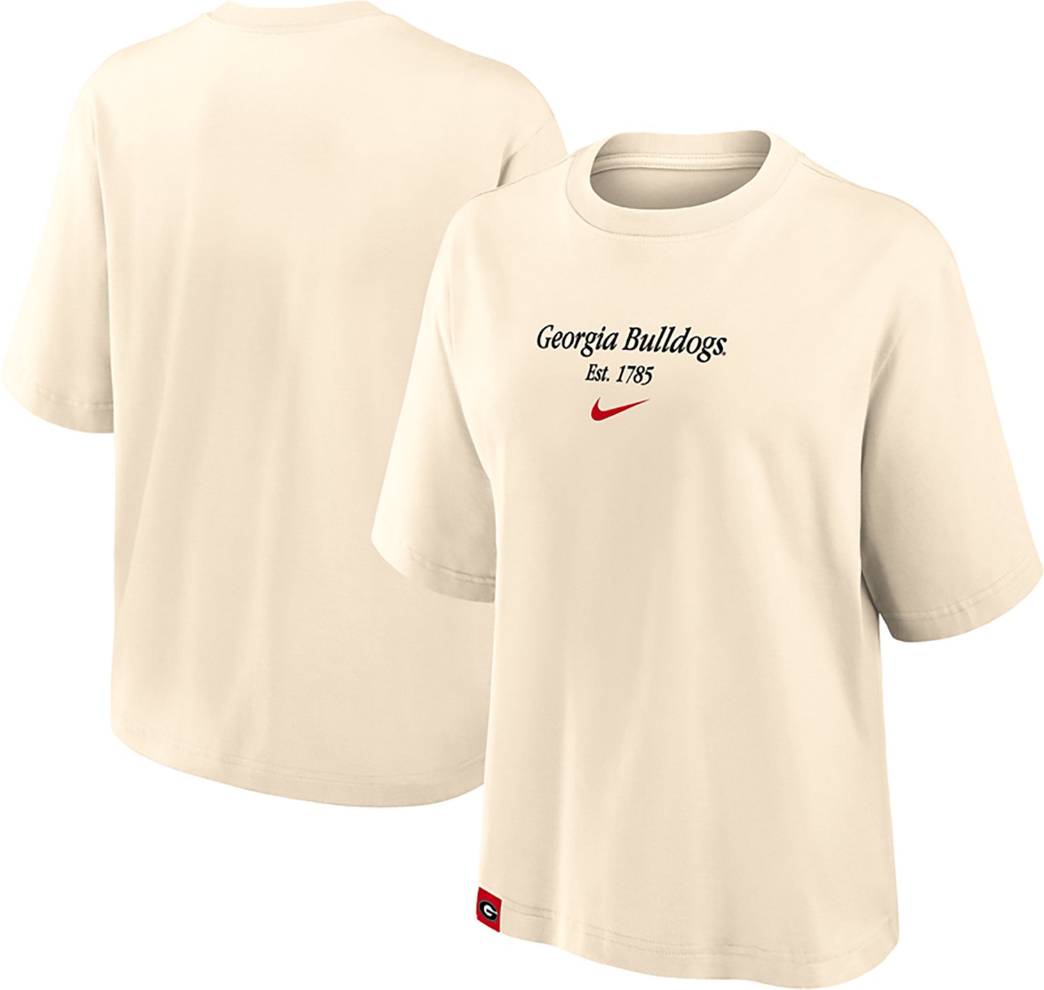 Academy Fan Shop NCAA Georgia Bulldogs Apparel + Gear Nike Women's Georgia Established Tag Boxy T-shirt Nike Women's Georgia Established Tag Boxy T-shirt