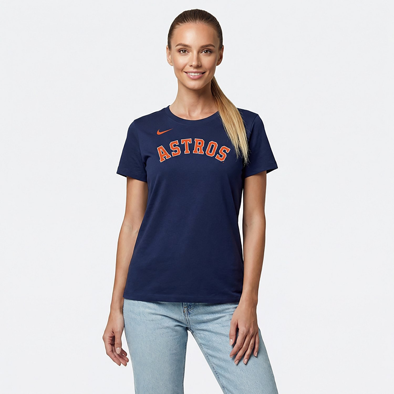 Put your team spirit on display with the Nike Women’s Houston Astros Fuse Wordmark Graphic T-shirt. The cotton material provides a comfortable feel, while the team wordmark shows off your Astros pride.