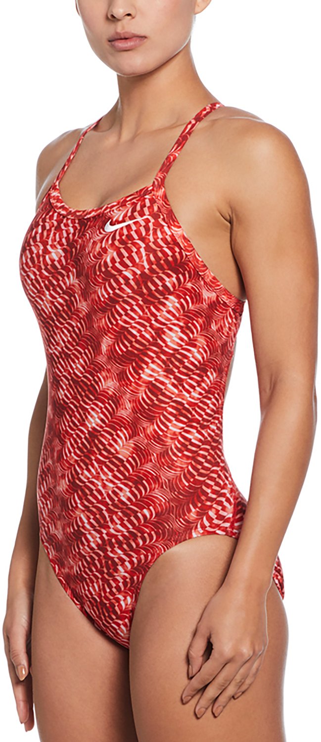 Push the boundaries of your lane with the Nike Women's Hydrastrong Pool Lanes Racerback Swimsuit. This one-piece swimsuit is made of chlorine-resistant polyester that dries quickly and resists snagging for lasting comfort. The polyester liner and racerback design keep you covered, while the scoop neck and printed design add a touch of flair.