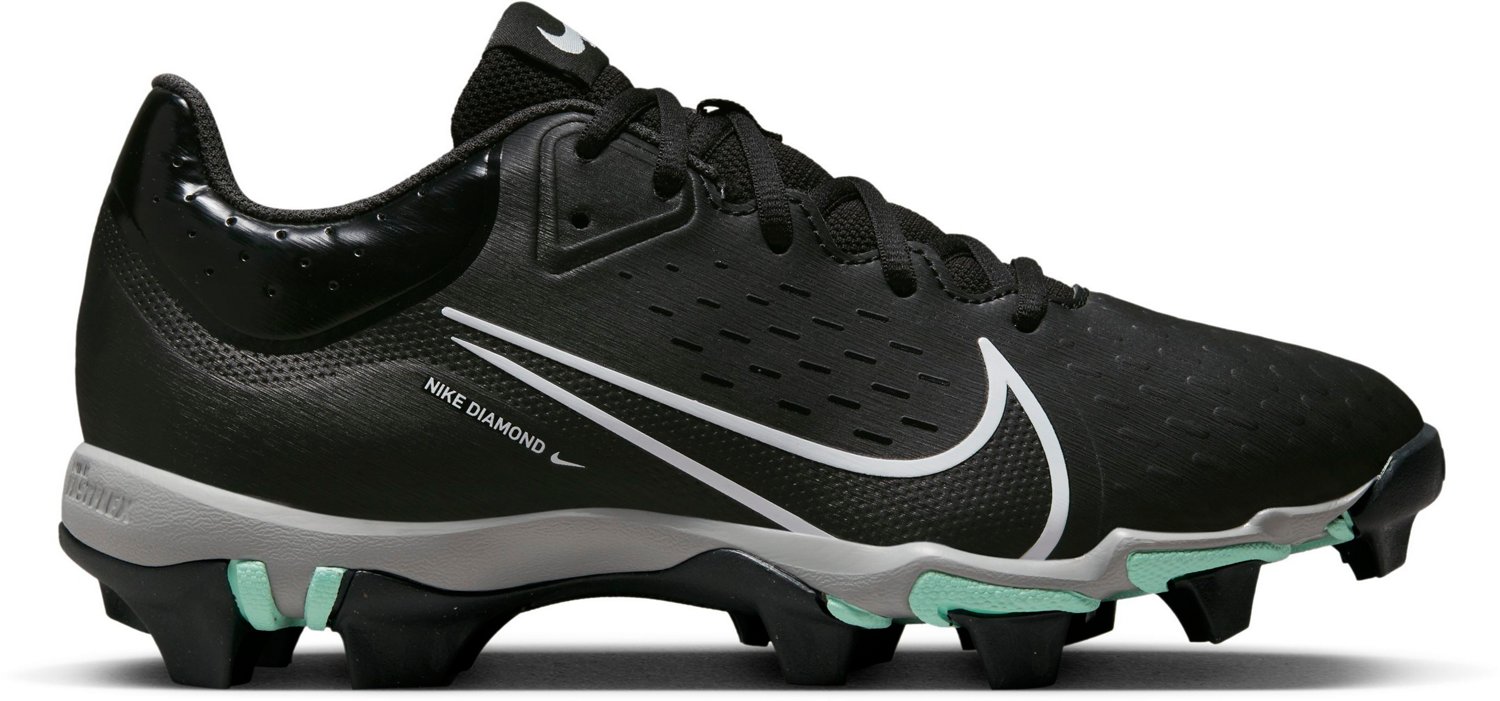 Stay light on your feet Nike Women's Hyperdiamond 4 Keystone RM Softball Cleats. Full-length cushioning provides game-long comfort while FastFlex soles bend for improved flexibility. Molded uppers with side decals offer lightweight durability against abrasion. A 12-cleat configuration delivers reliable traction on the field.