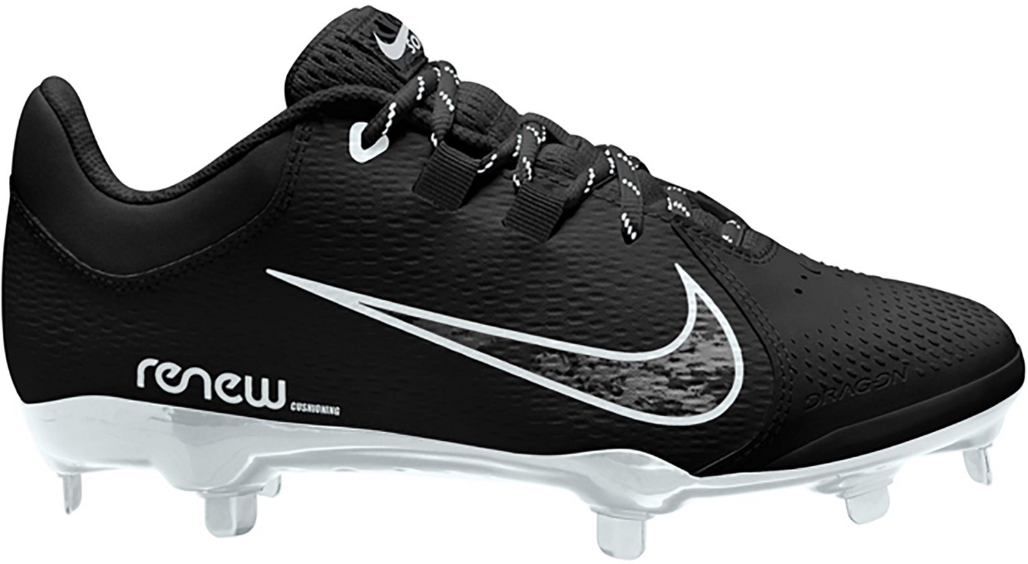 Show off your skills on the diamond in the Nike Women's Hyperdiamond 4 Pro Softball Cleats. The low top uppers free the ankle to encourage natural range of motion, while the metal plated cleats provide reliable traction on the field and the lace-up closures supply a secure, custom fit.