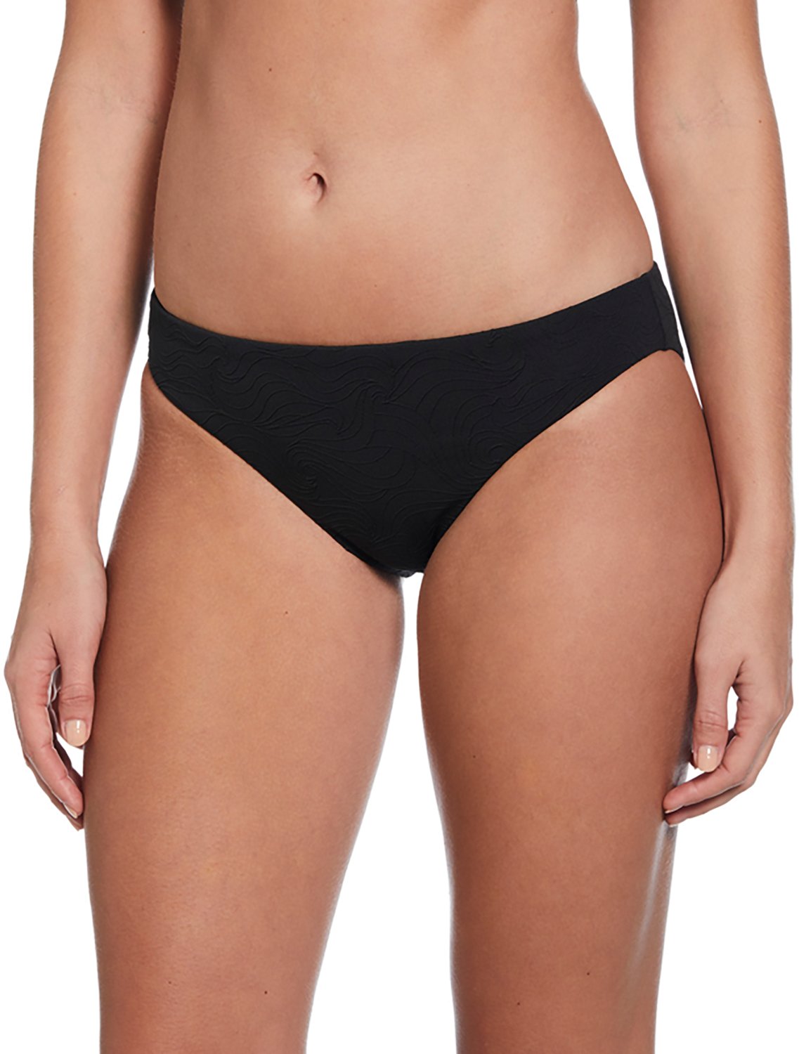 Mix and match these Nike Women's Line Wave Jacquard Hipster Bikini Bottoms with tops for a versatile swimwear style. The body is made of 94% recycled polyester and 6% spandex for durability and a flexible fit, and the bottoms are lined with 100% recycled polyester for added durability.