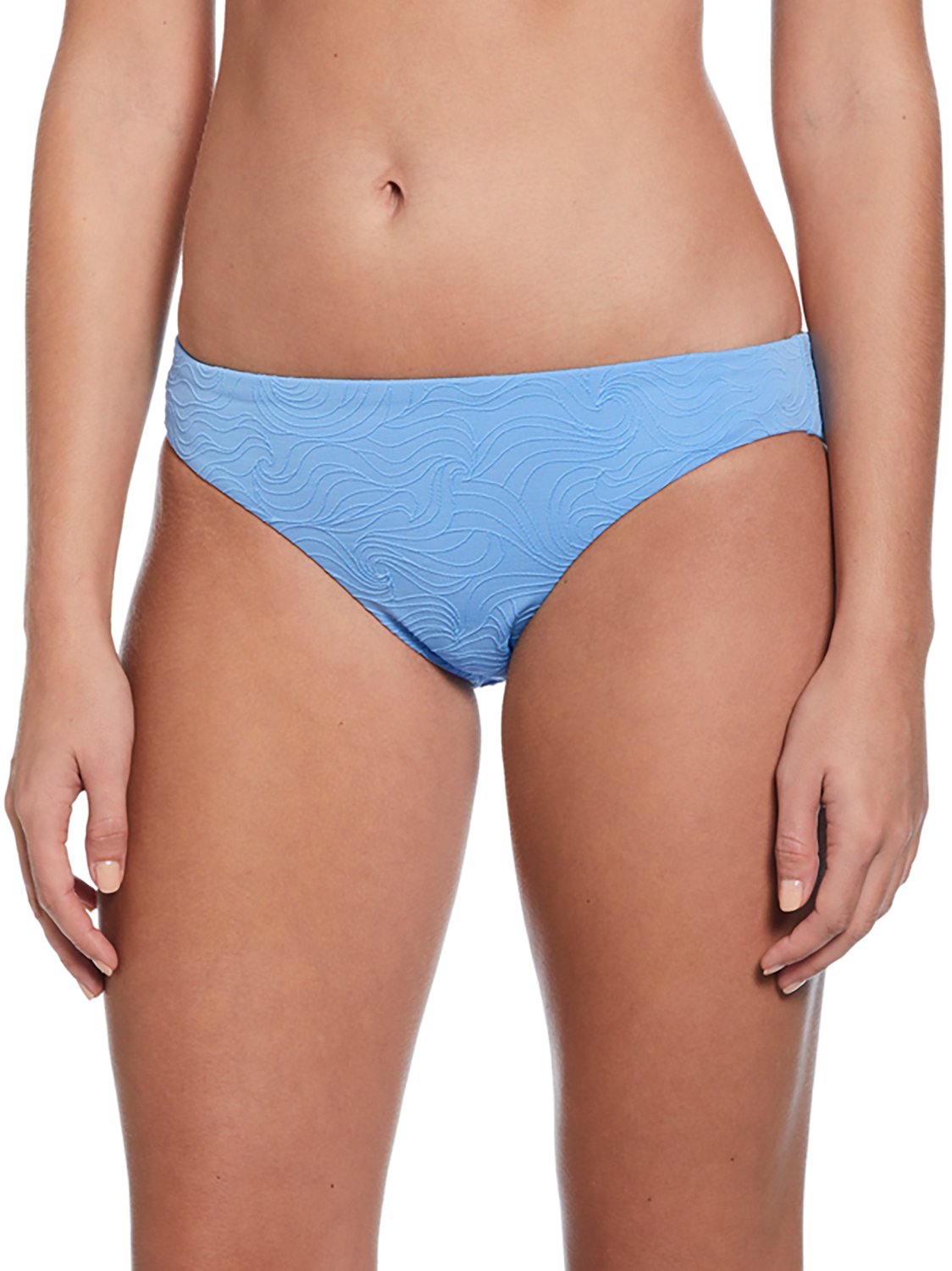 Mix and match these Nike Women's Line Wave Jacquard Hipster Bikini Bottoms with tops for a versatile swimwear style. The body is made of 94% recycled polyester and 6% spandex for durability and a flexible fit, and the bottoms are lined with 100% recycled polyester for added durability.