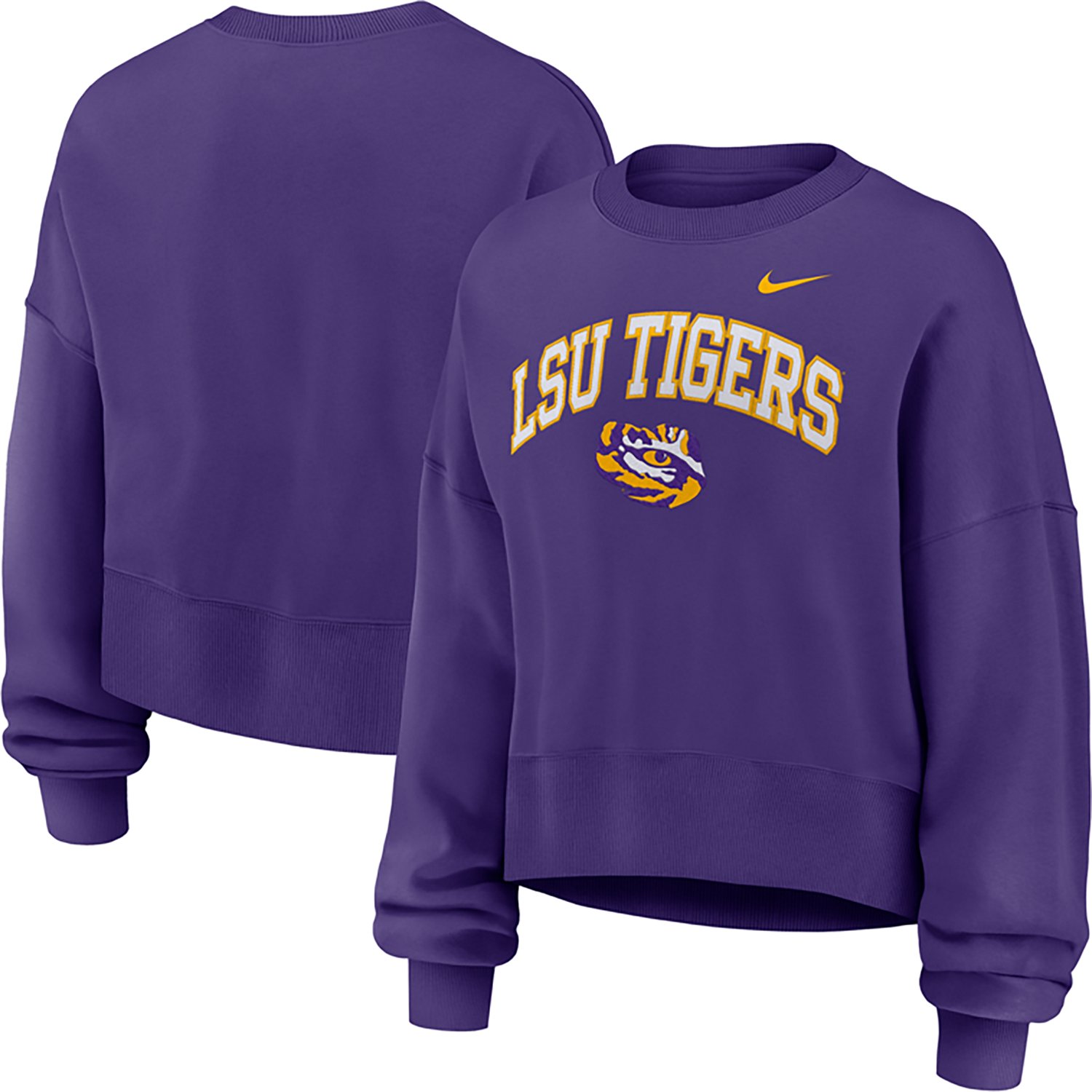Show your support with the Nike Women's Louisiana State University Tigers Phoenix Arch Oversized Crew. The material is soft and warm, and the oversized fit is comfy and stylish.