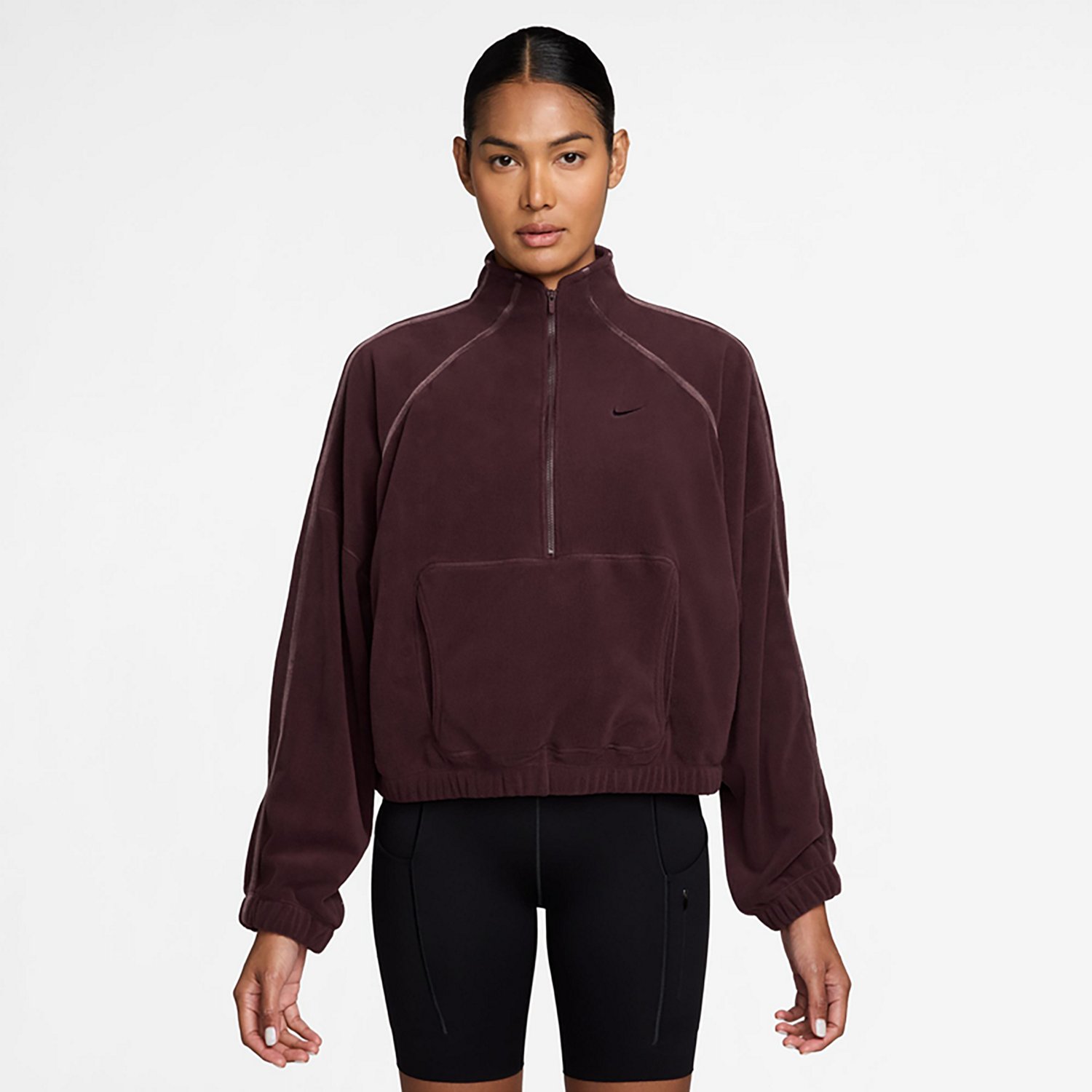 Look your best when you wear the Nike Women's Nike One Therma-FIT 1/2-Zip Sweatshirt. It is made of 100% polyester. The Therma-FIT technology helps keep you warm, and its long sleeves provide additional coverage. The 1/2-zip neck offers an adjustable neckline.
