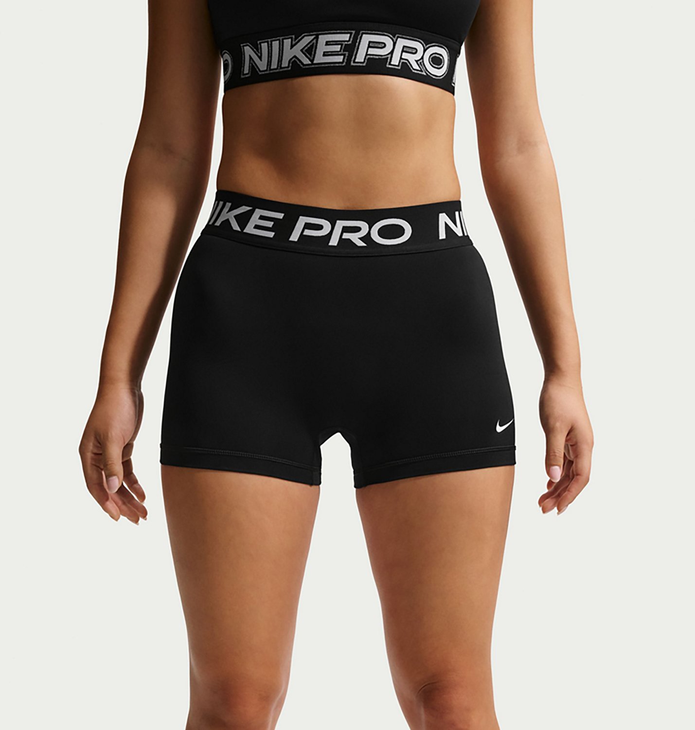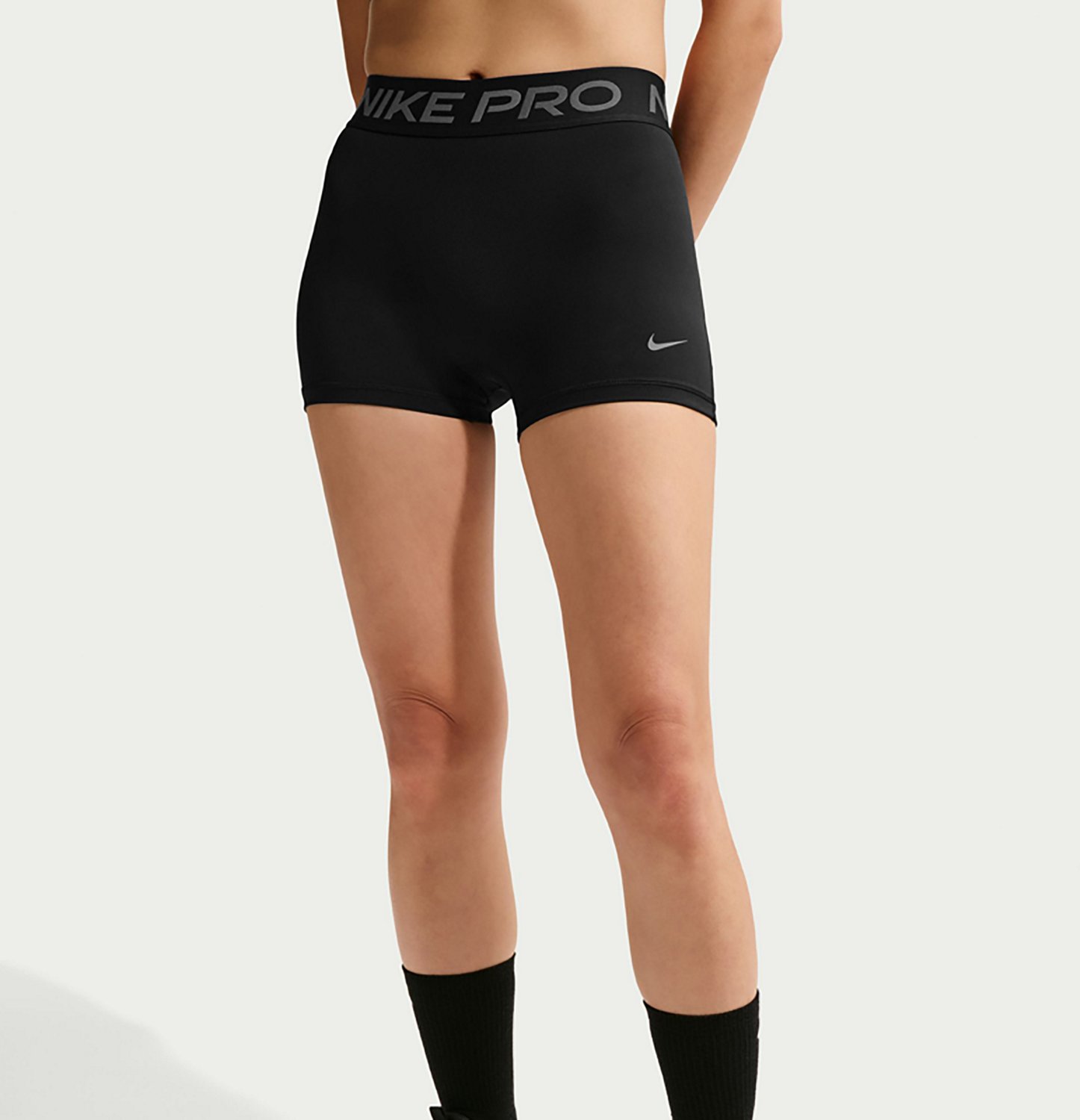 Look your best when you wear the Nike Women's Nike Pro Dri-FIT Mid-Rise Biker Shorts 3 in. Their body is made of 83% polyester and 17% spandex. The Dri-FIT technology wicks away sweat and quickly dries, and their Nike Pro branded elastic jacquard waistband offers a comfortable wear. The absence of a front seam helps keep the fabric from riding up for a smooth fit.