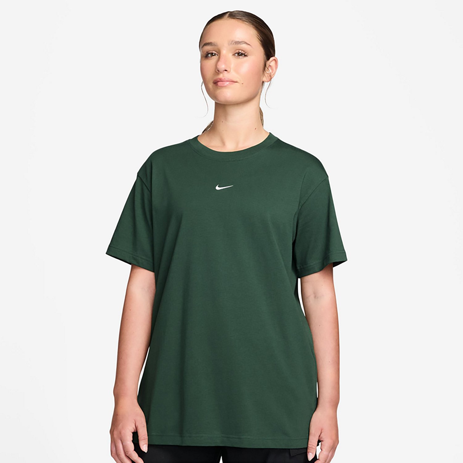 Feel comfortable when you wear the Nike Women's Nike Sportswear Classic Short Sleeve T-shirt. It is made of 100% cotton. The short sleeves keep you cool, and its crew neckline creates a casual look. The oversized fit offers a comfortable wear.