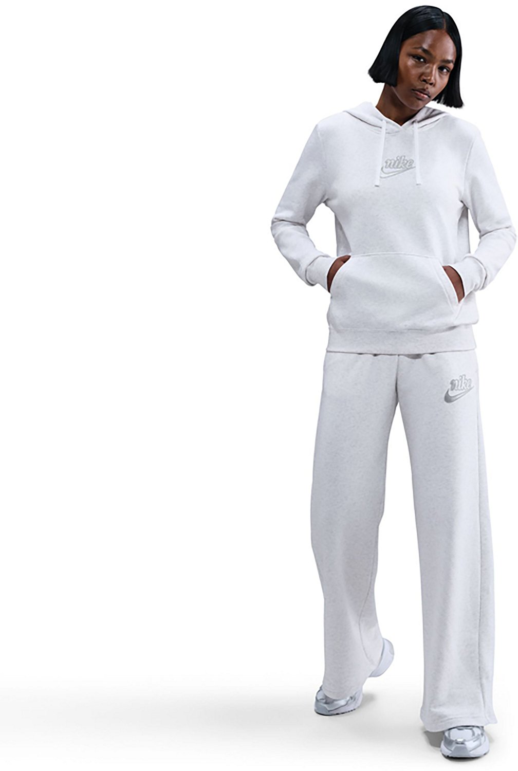 Look your best when you wear the Nike Women's Nike Sportswear Club Fleece Graphic Pullover Hoodie. It is made of 80% cotton and 20% polyester. The long sleeves keep you warm, and its hooded neckline offers additional coverage. The kangaroo pocket allows you to carry around small items.