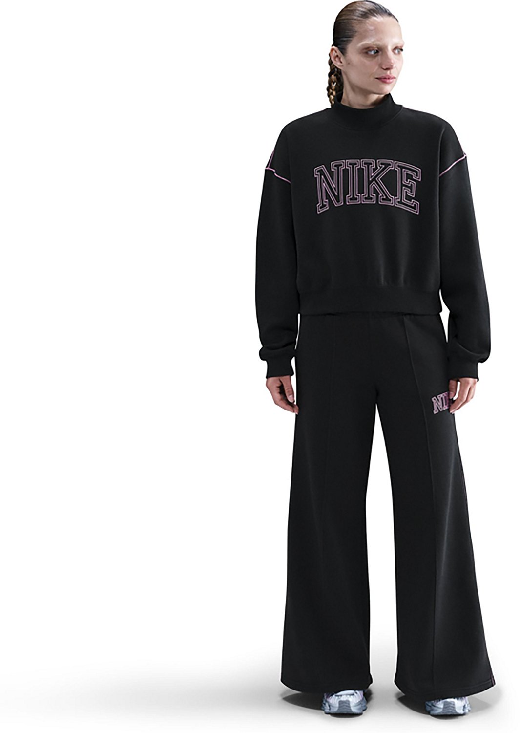 Look your best when you wear the Nike Women's Nike Sportswear Phoenix Fleece Mock Neck Sweatshirt. Its body is made of 80% cotton and 20% polyester. The long sleeves provide additional warmth, and its mock neckline works well with layering. The ribbed cuffs, collar, and hem offer a unique touch.