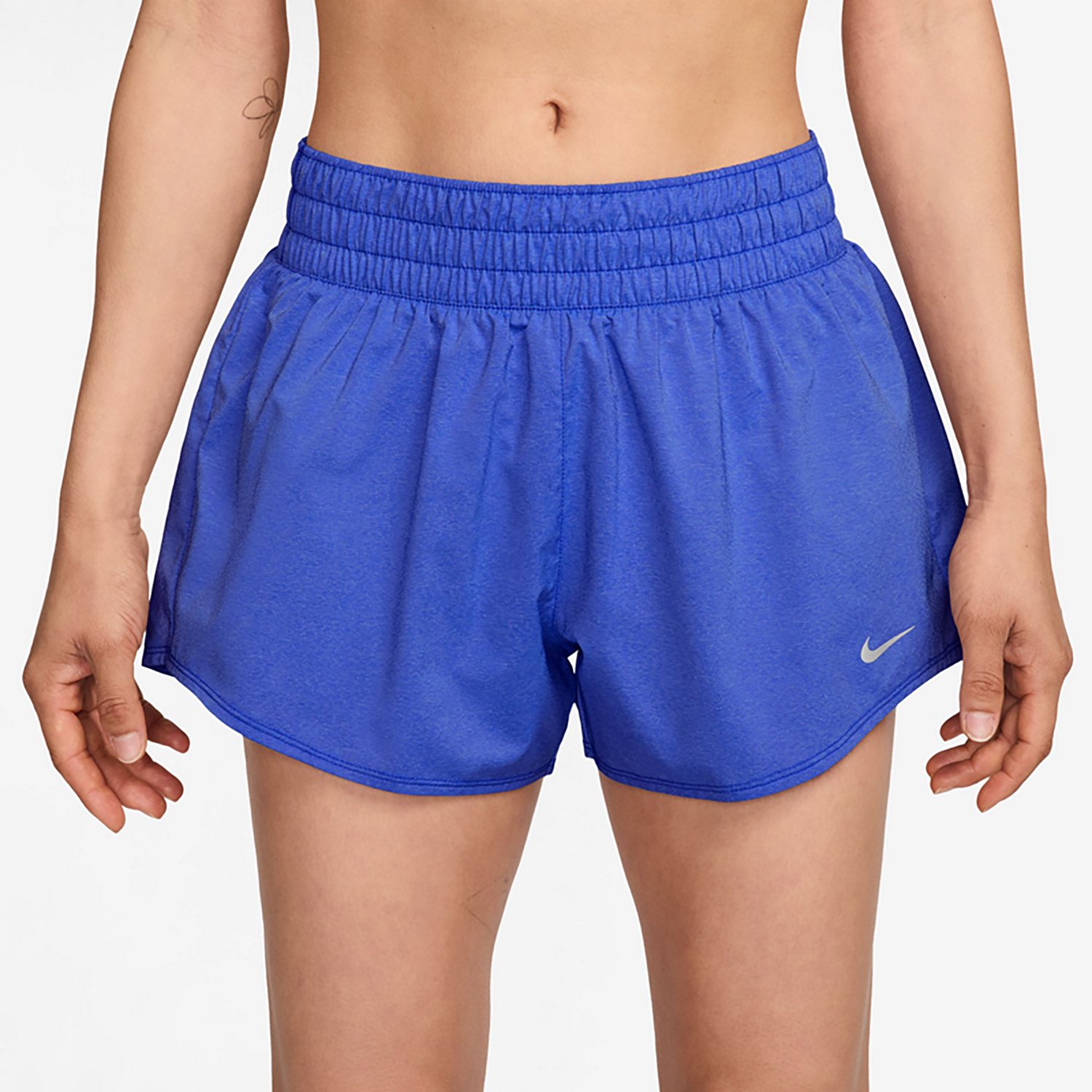 Empower your routine with Nike Women's One Dri-FIT Mid-Rise Shorts 3in. The mid rise elastic waistband provides a snug, supportive fit while side panels flare out to create extra room for your legs to move. Dri-FIT technology wicks away sweat to keep you feeling fresh.