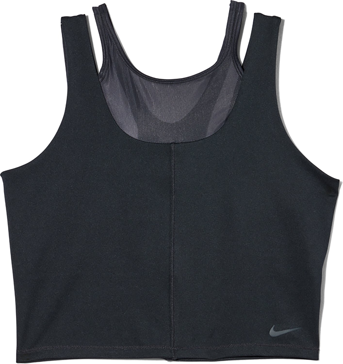 Pair comfort with style by wearing the Nike Women's One Fitted Dri-FIT Cropped Tank Top. The polyester and spandex material provides a comfortable feel, while Dri-FIT technology wicks away sweat to keep you cool and dry. The shelf bra liner offers coverage, and the sheer panel on the chest promotes breathability.