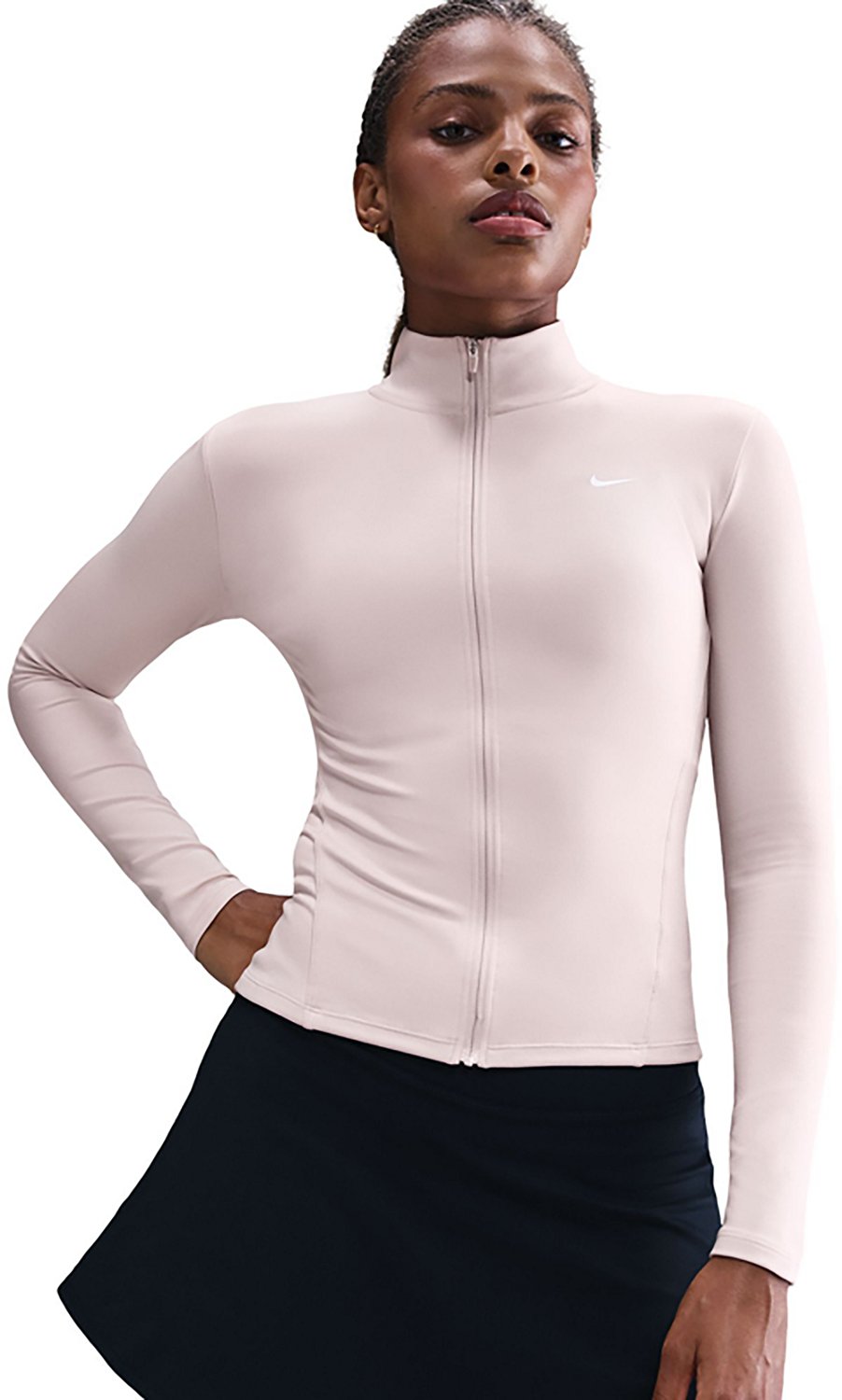 Look your best with the Nike Women's One Fitted Dri-FIT Full-Zip Jacket. The polyester and spandex material provides a comfortable feel, while the Dri-FIT technology helps keep you cool and dry. The Swoosh logo offers a stylish touch.
