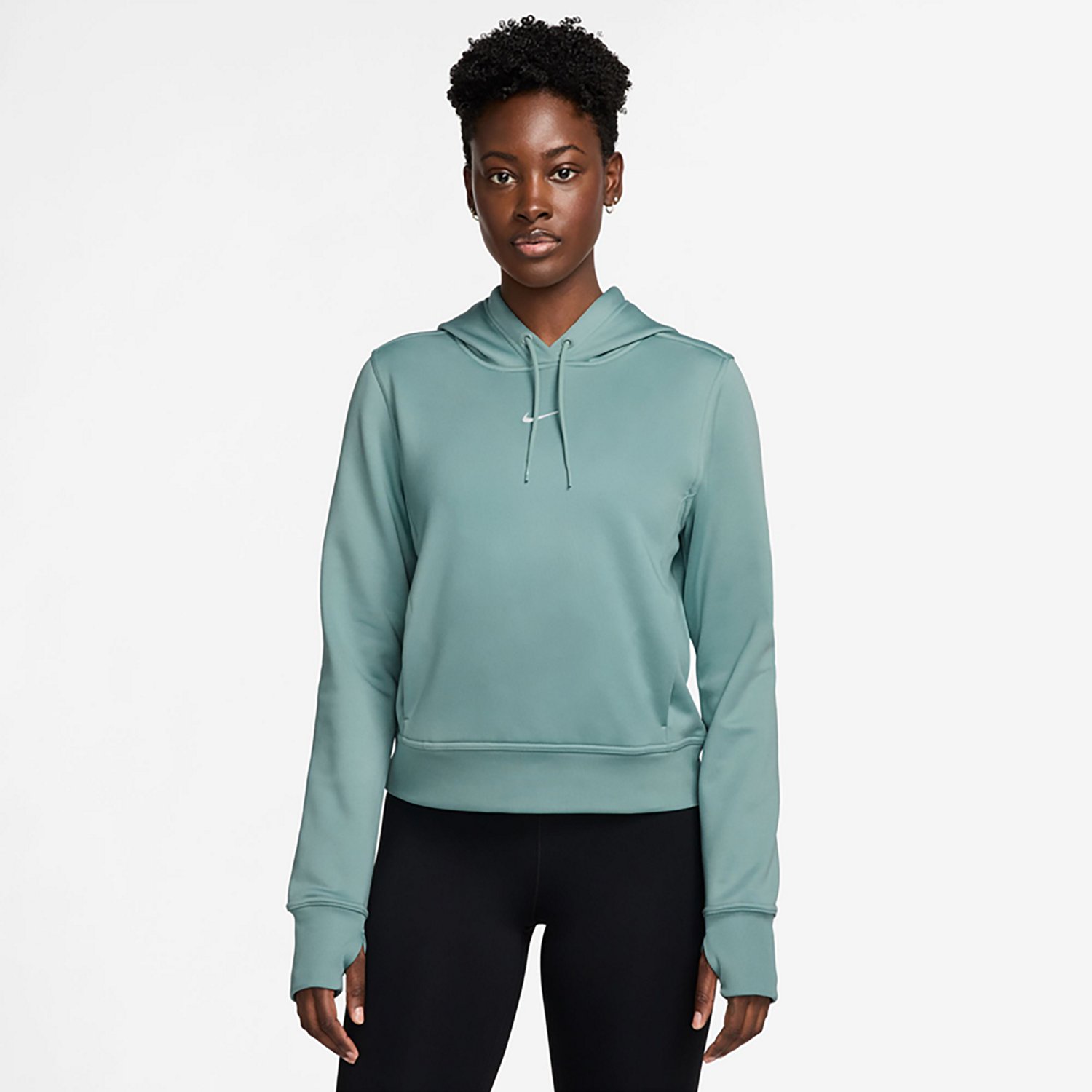 Cozy up in the Nike Women's One Therma-FIT Pullover Hoodie. The polyester and elastane construction provides a soft feel and the Nike detail on the front highlights your style. The Therma-FIT technology helps you stay warm in colder temperatures.