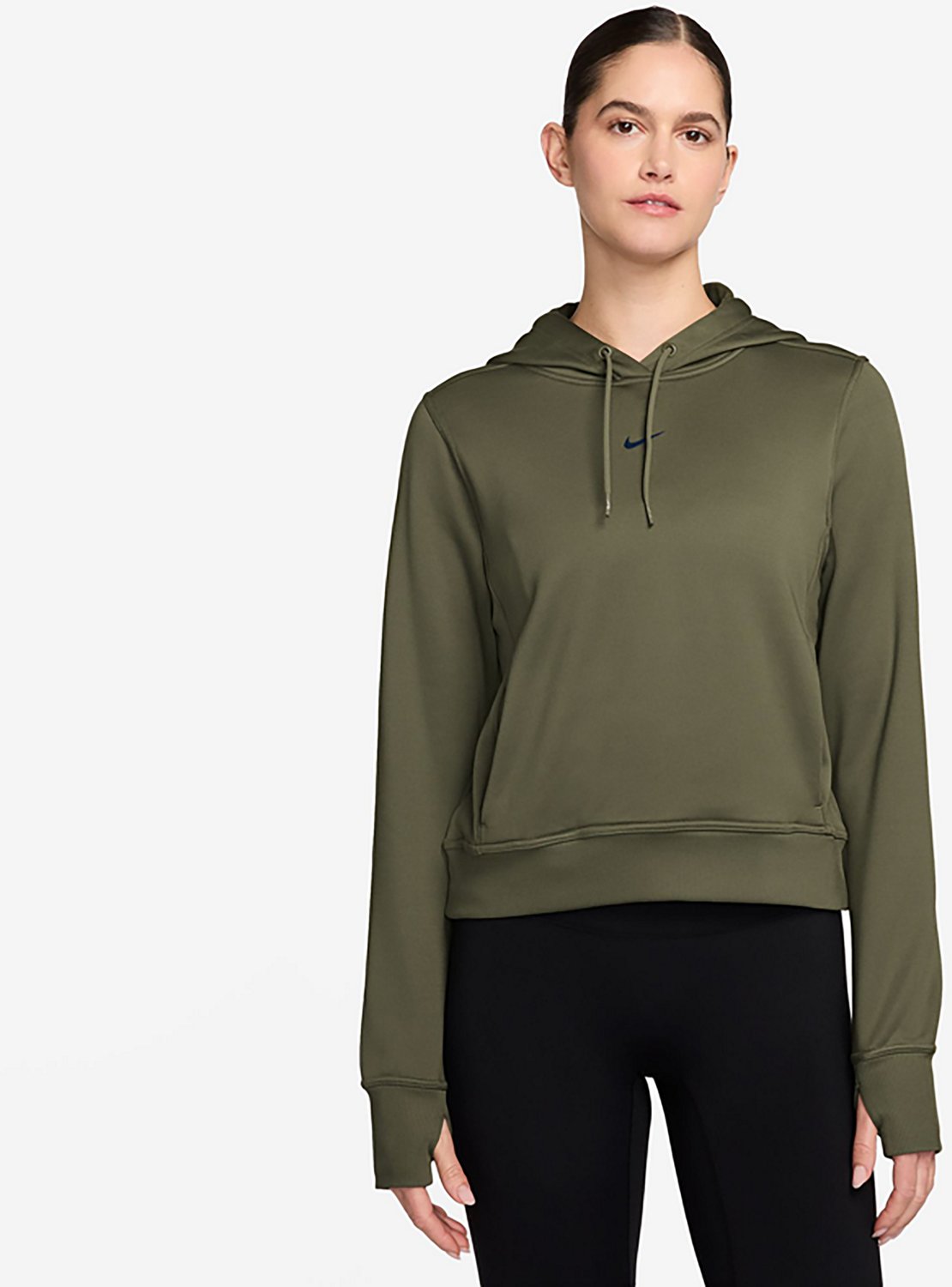 Cozy up in the Nike Women's One Therma-FIT Pullover Hoodie. The polyester and elastane construction provides a soft feel and the Nike detail on the front highlights your style. The Therma-FIT technology helps you stay warm in colder temperatures.