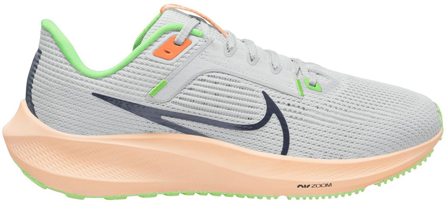 The Nike Women's Pegasus 40 Running Shoes provide the breathability and targeted comfort runners need while on the move. Mesh and suede materials promote a cool, distraction-free feel, and durable rubber soles with a waffle-inspired pattern provide traction. Nike React technology delivers a smooth, responsive ride. Zoom Air units and an added flex groove promote energized, seamless transitions. Lace closures,
