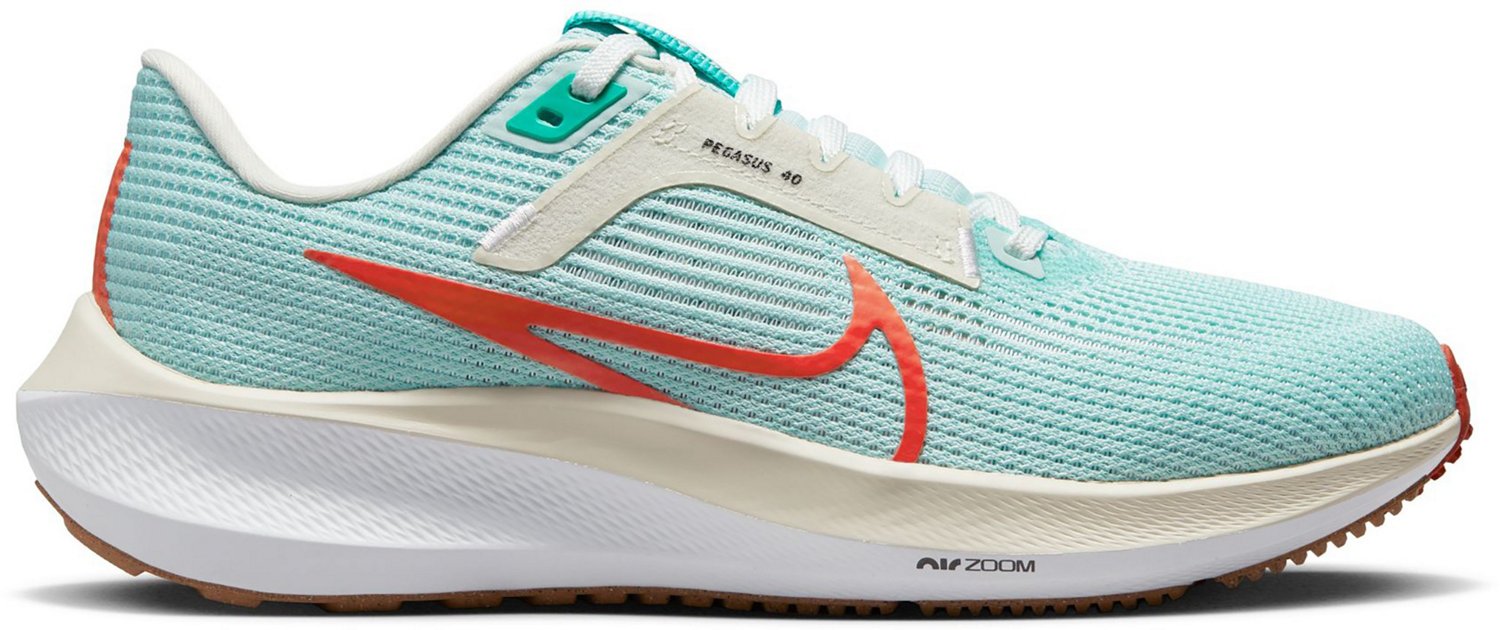 The Nike Women's Pegasus 40 Running Shoes provide the breathability and targeted comfort runners need while on the move. Mesh and suede materials promote a cool, distraction-free feel, and durable rubber soles with a waffle-inspired pattern provide traction. Nike React technology delivers a smooth, responsive ride. Zoom Air units and an added flex groove promote energized, seamless transitions. Lace closures,
