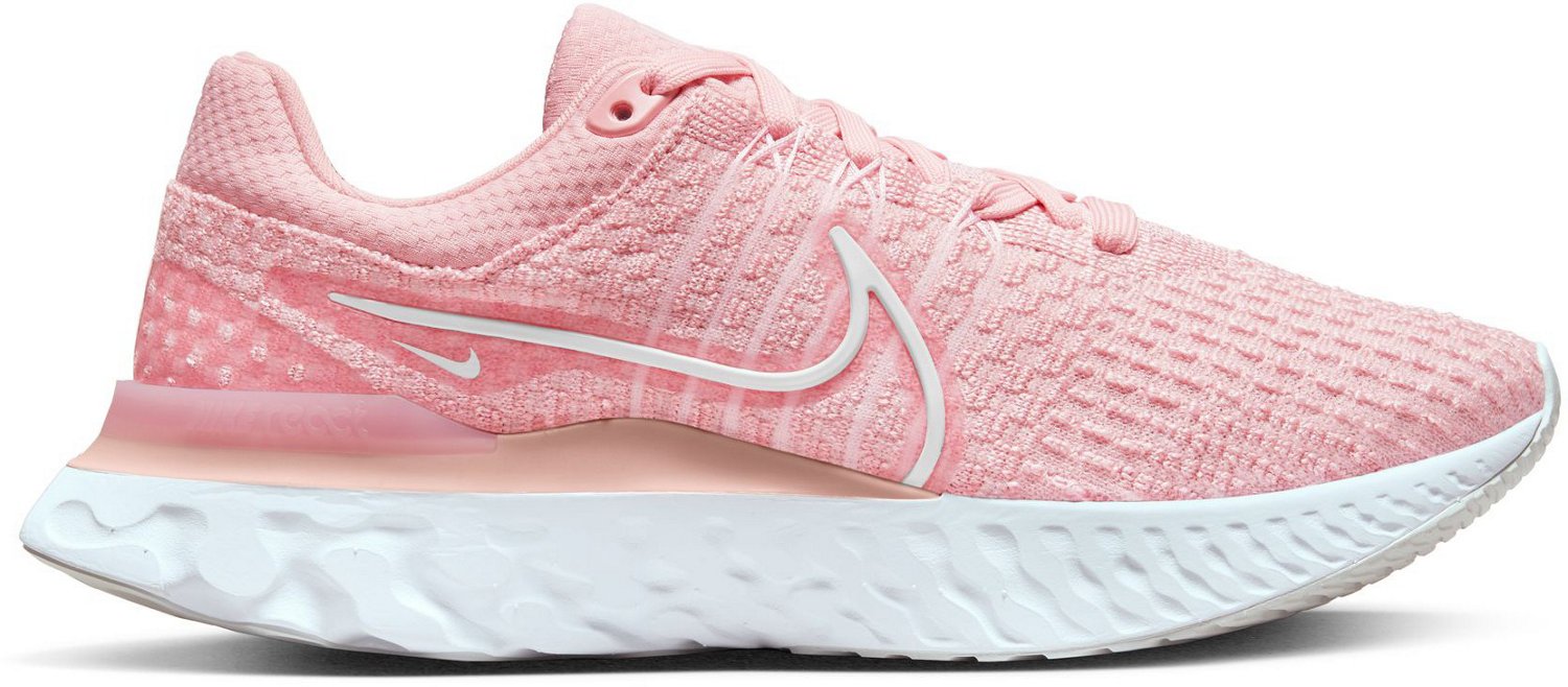 Take in the miles with comfort and confidence underfoot when you lace up the Nike Women's React Infinity Flyknit 3 Running Shoes. The Flyknit uppers offer a lightweight, breathable fit. The Nike React technology provides a smooth, responsive feel. The cushioned insoles add a springy performance, while the Flywire technology delivers support through the midfeet.