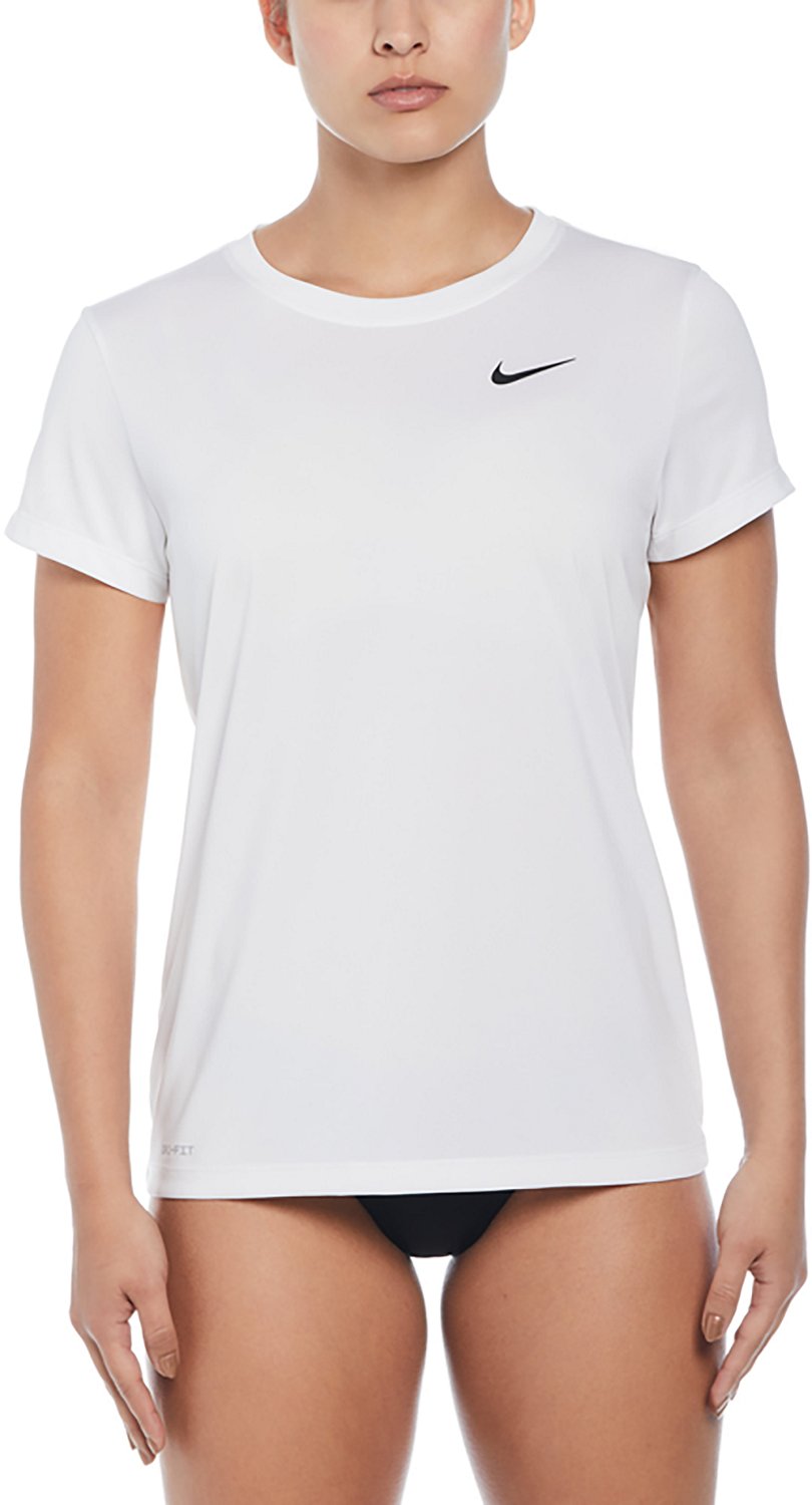 Stay protected in and out of the water with the Nike Women's Short Sleeve Hydroguard Swim Shirt. This t-shirt-style swim shirt is made for the beach with built-in sun protection that shields your skin from UV rays and moisture-wicking material that helps you stay comfortable. The scoop neck on this lightweight polyester shirt creates a touch of elegance.