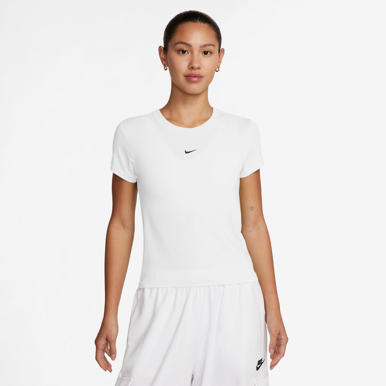 Work out or lounge around in the Nike Women's Sportswear Chill Knit T-Shirt. This comfortable t-shirt is made of a blend of modal, cotton and spandex for a knit stretch that gives you room to breathe and move. The slim fit is slightly cropped and drapes over your body, creating a tailored look.