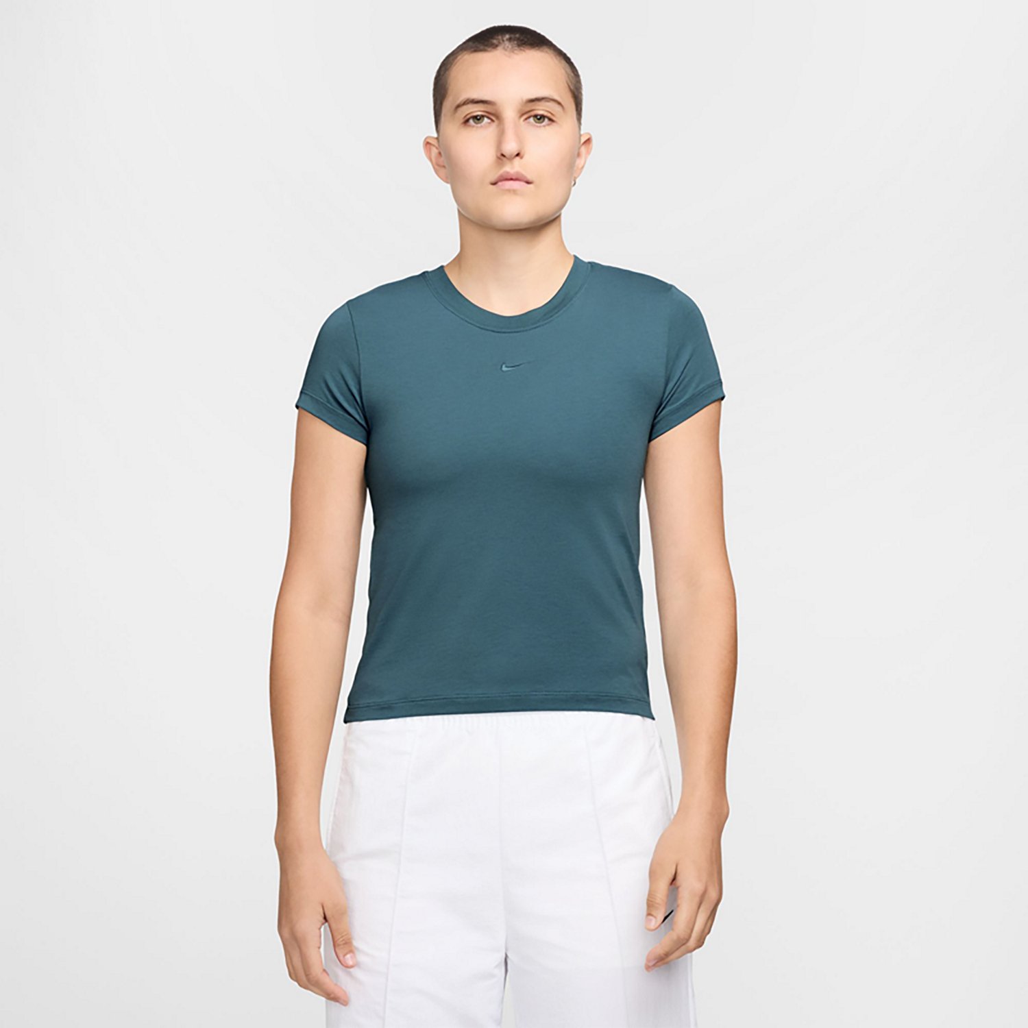 Work out or lounge around in the Nike Women's Sportswear Chill Knit T-Shirt. This comfortable t-shirt is made of a blend of modal, cotton and spandex for a knit stretch that gives you room to breathe and move. The slim fit is slightly cropped and drapes over your body, creating a tailored look.
