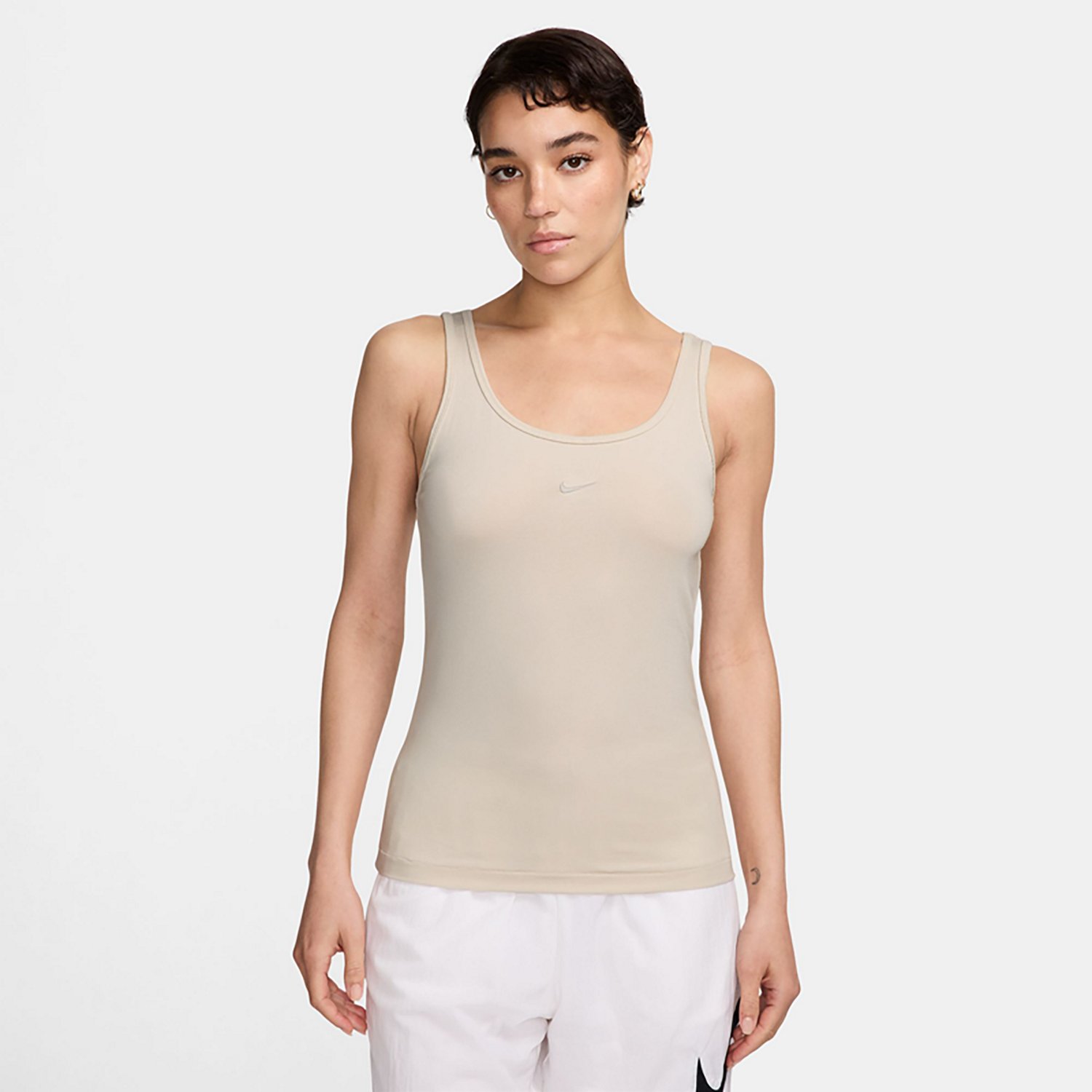Add a new staple to your wardrobe with the Nike Women's Sportswear Chill Knit Tank Top. It is made of 48% modal, 46% cotton, and 6% spandex. It is designed with a scoop neckline, and the Swoosh logo is embroidered on the front. It offers a classic and comfortable fit.