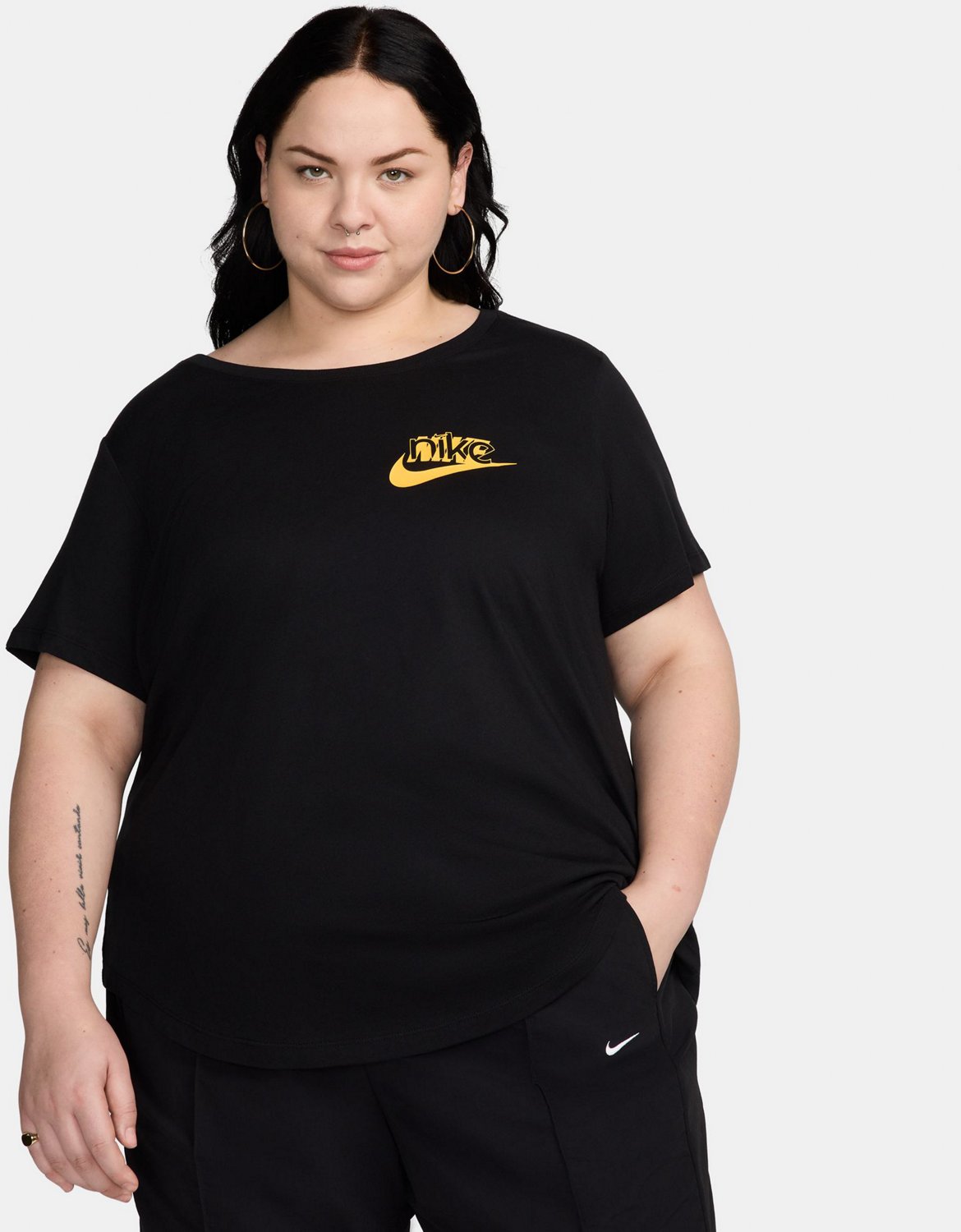 An iconic look meets everyday comfort with the Nike Women's Sportswear Club LBR Plus Size T-shirt. The cotton material offers a soft and lightweight feel, while the printed and stylized logo creates a signature look.
