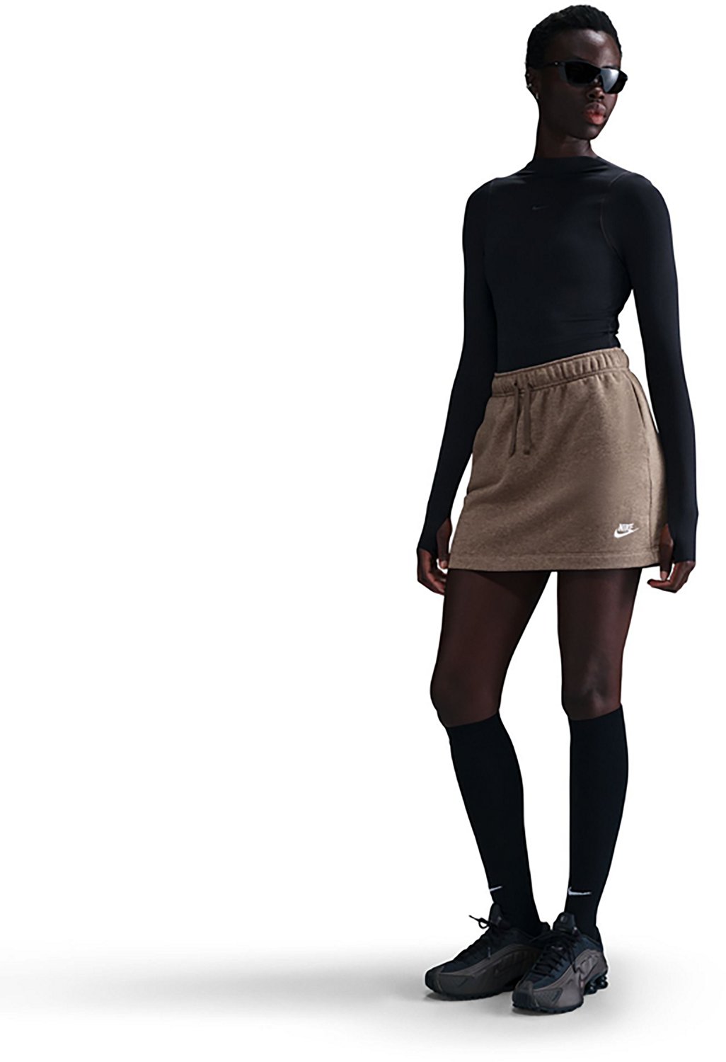 Stay comfy while looking cool in the Nike Women's Sportswear Club Fleece Mid Rise Skirt. Its body is made of 80% cotton and 20% polyester semibrushed fleece that helps you feel good as you go about your day, and the elastic waistband has a flat drawstring to help you adjust the fit. Side pockets let you store your things.