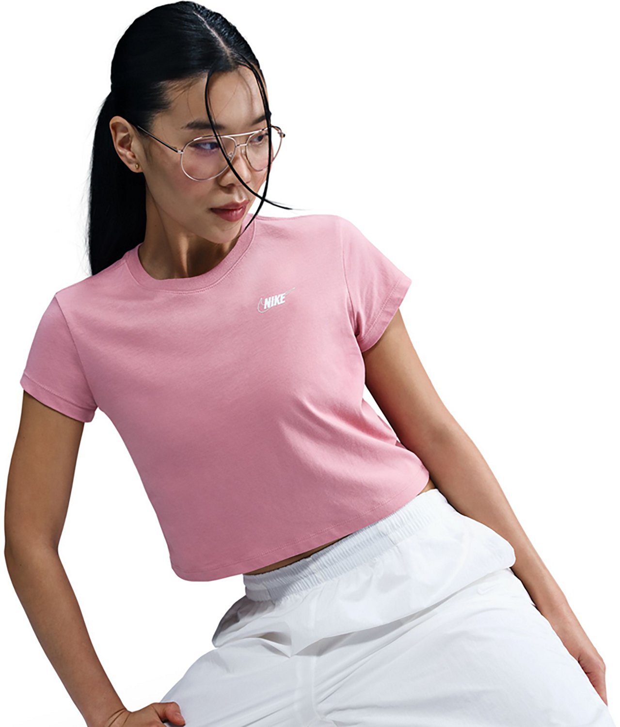 Add a new staple to your wardrobe with the Nike Women's Sportswear Club T-shirt. It is made of 100% cotton. It is slightly cropped in length, and the printed graphics are on the front. It is machine wash safe.