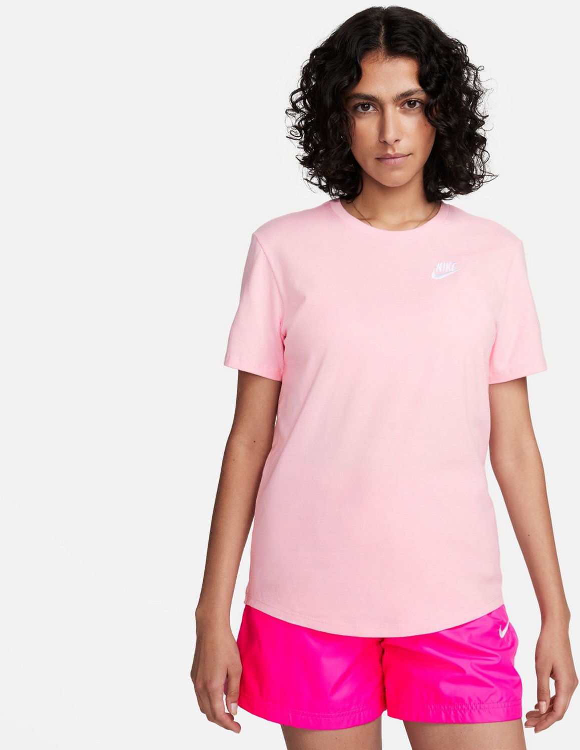 Elevate your everyday style with a Nike Women's Sportswear Club T-shirt. The cotton blend fabric lends a soft touch for day-long comfort, while the slightly wide fit and curved hem create a casual and classy look.