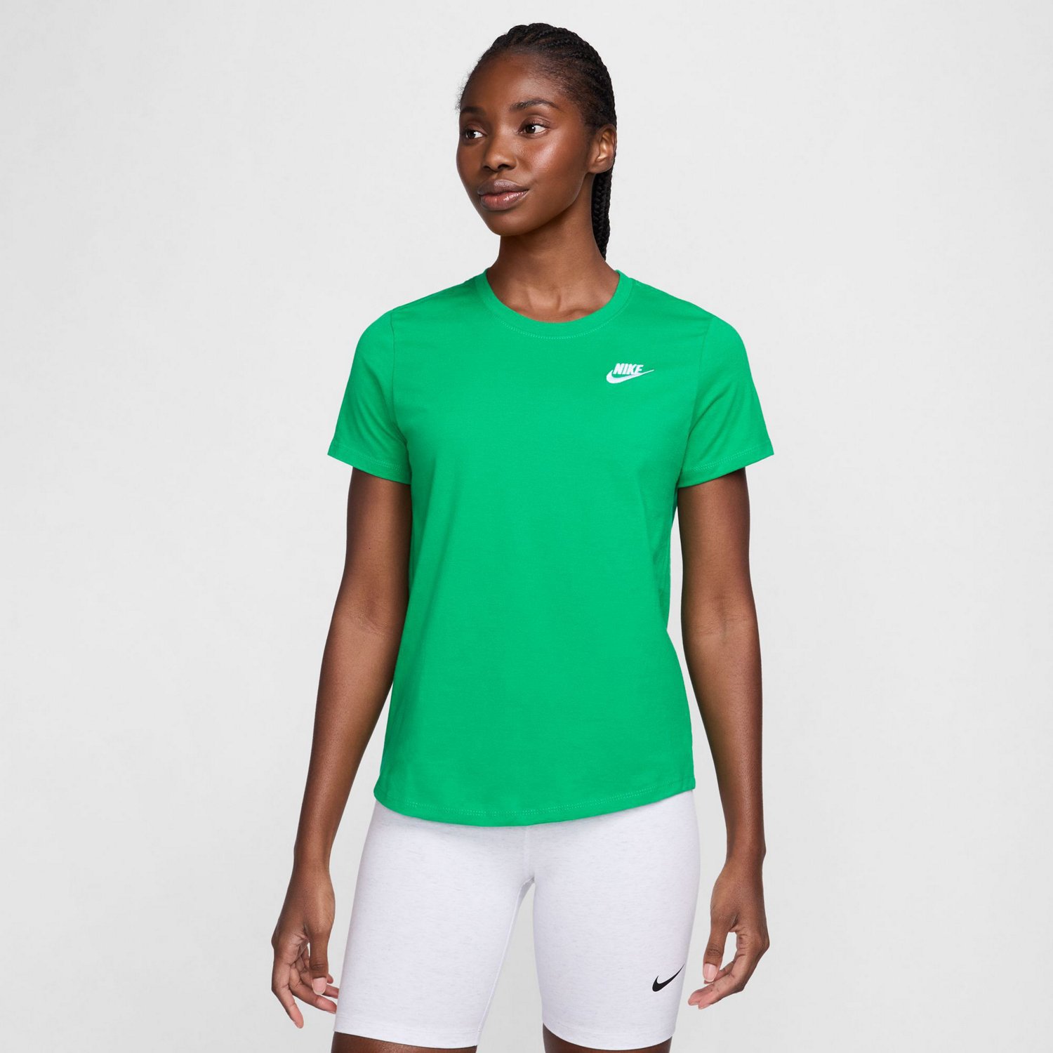 Elevate your everyday style with a Nike Women's Sportswear Club T-shirt. The cotton blend fabric lends a soft touch for day-long comfort, while the slightly wide fit and curved hem create a casual and classy look.